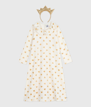 Girls' Golden Heart Print Velour Fancy Dress Nightdress
