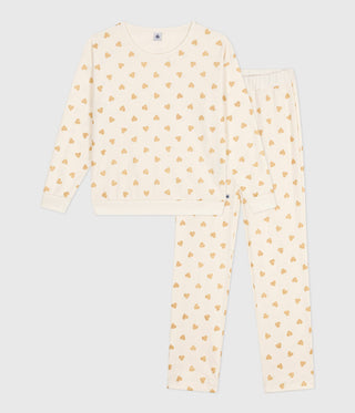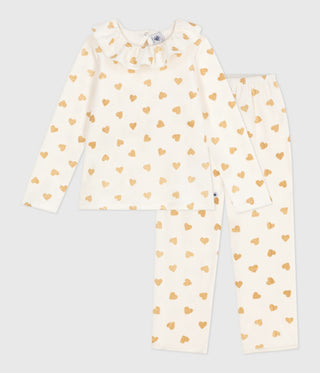 Girls' Golden Heart Print Long-Sleeved Cotton Pyjamas