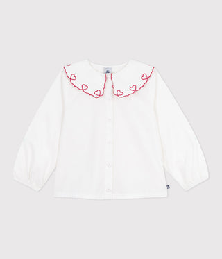 Babies' Long-Sleeved Cotton Poplin Blouse With Embroidered Hearts