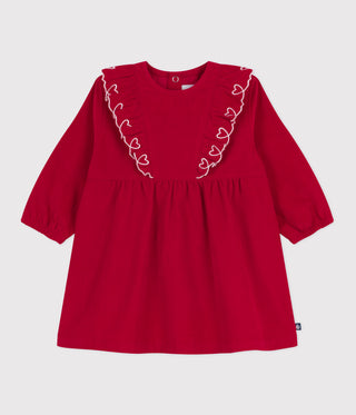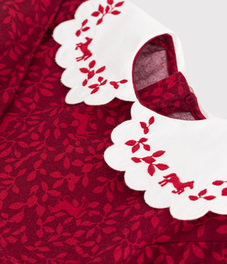 Babies' Long-Sleeved Printed Cotton Dress With An Embroidered Collar