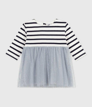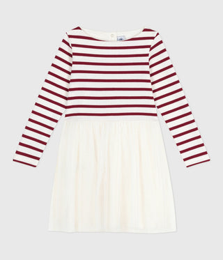 Girls' Long-Sleeved Stripy Dress in Cotton and Tulle