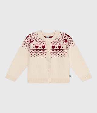 Babies' Heart-Pattern Wool and Cotton Knit Cardigan