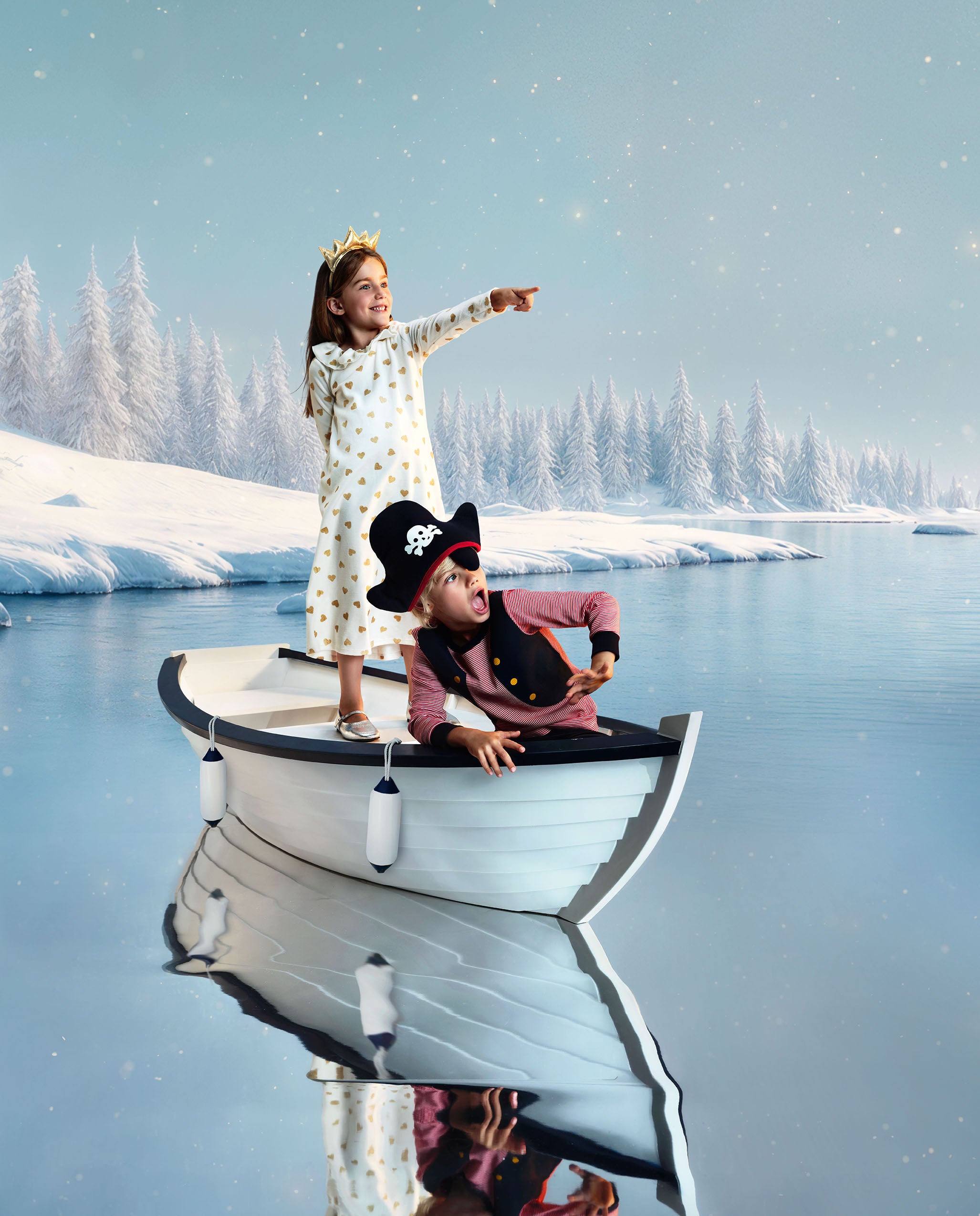 • Girl's nightdress with a collar and a crown in terry velour, a warm and stylish fabric.