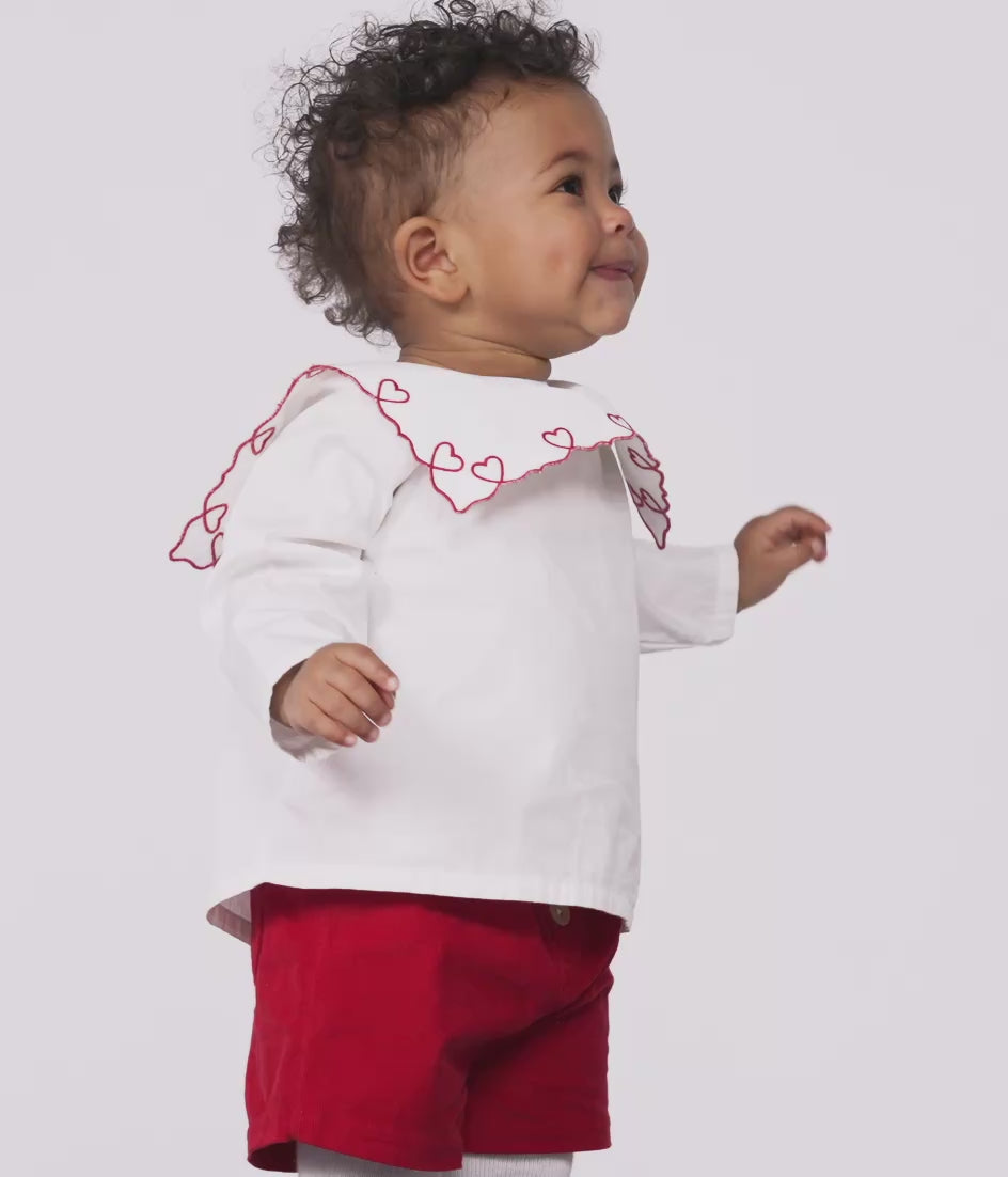 - Girls' blouse in poplin, a lightweight, fine and supple fabric. The collar and embroidery make it very stylish.