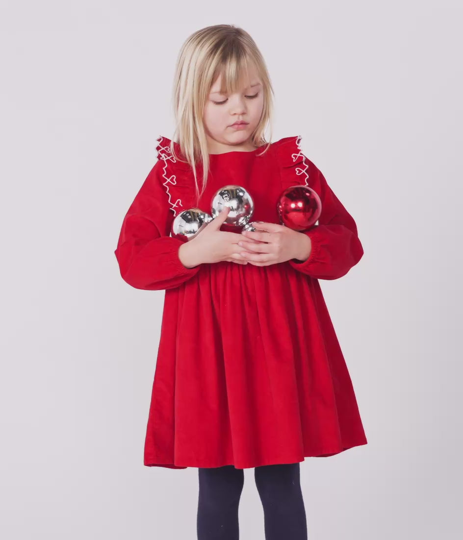 - Girl's dress in fine, light corduroy, ideal for winter.