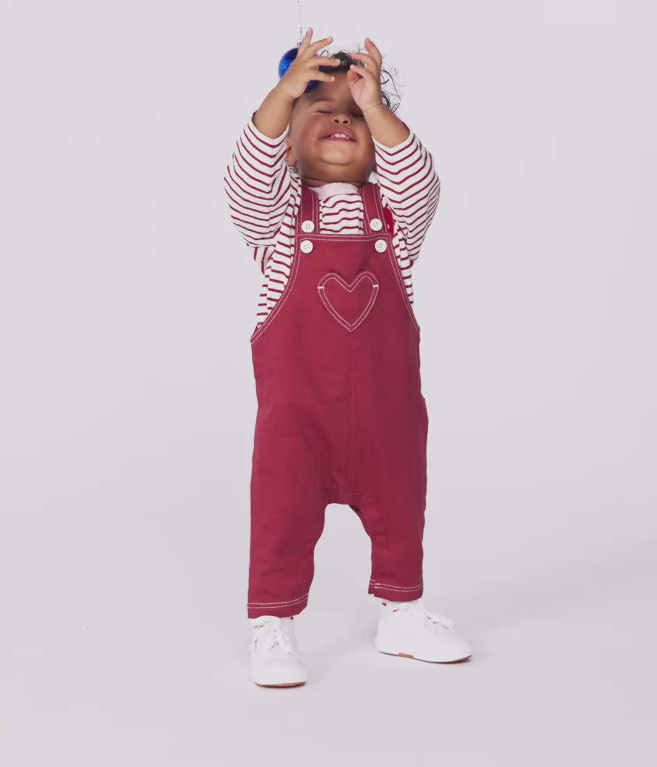 - Girls' dungarees in colourful denim, a soft, comfy fabric, featuring an adorable heart pocket.