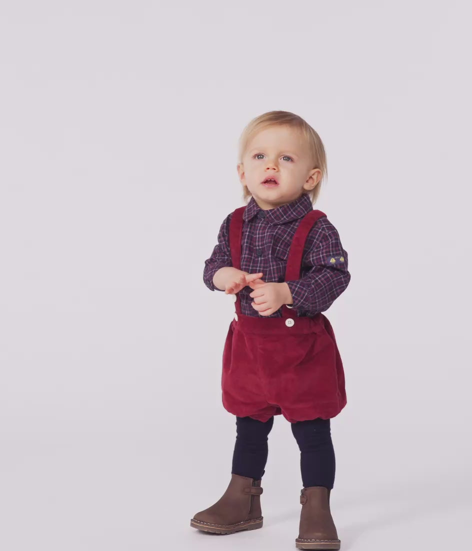 Babies' Plain Corduroy Shorts With Shoulder Straps