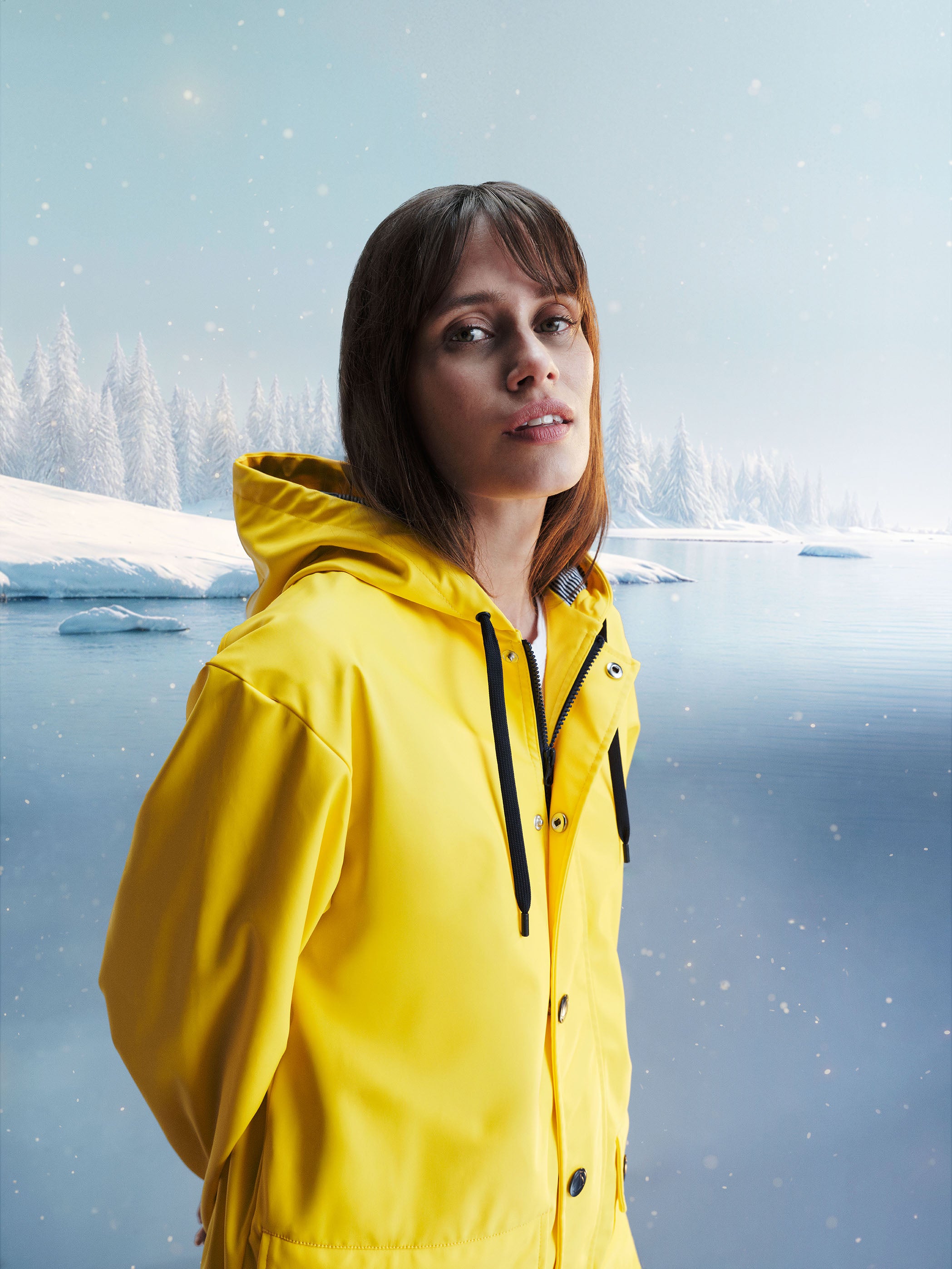 • Straight cut, soft and comfortable pinstriped lining, zip fastening under placket, waxed waterproof knit for protection from the rain.