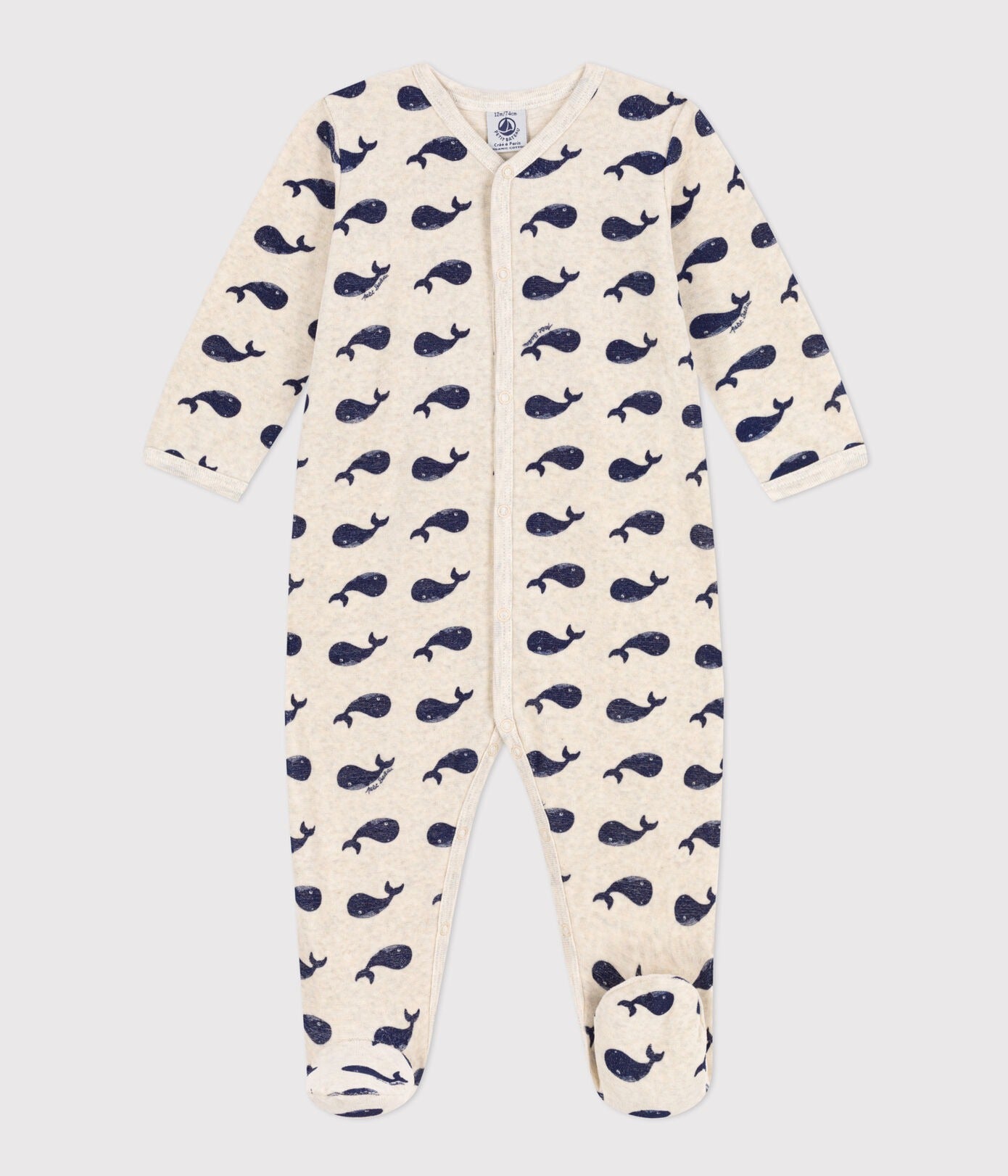 - This sleepsuit has poppers on the front and between the legs.
