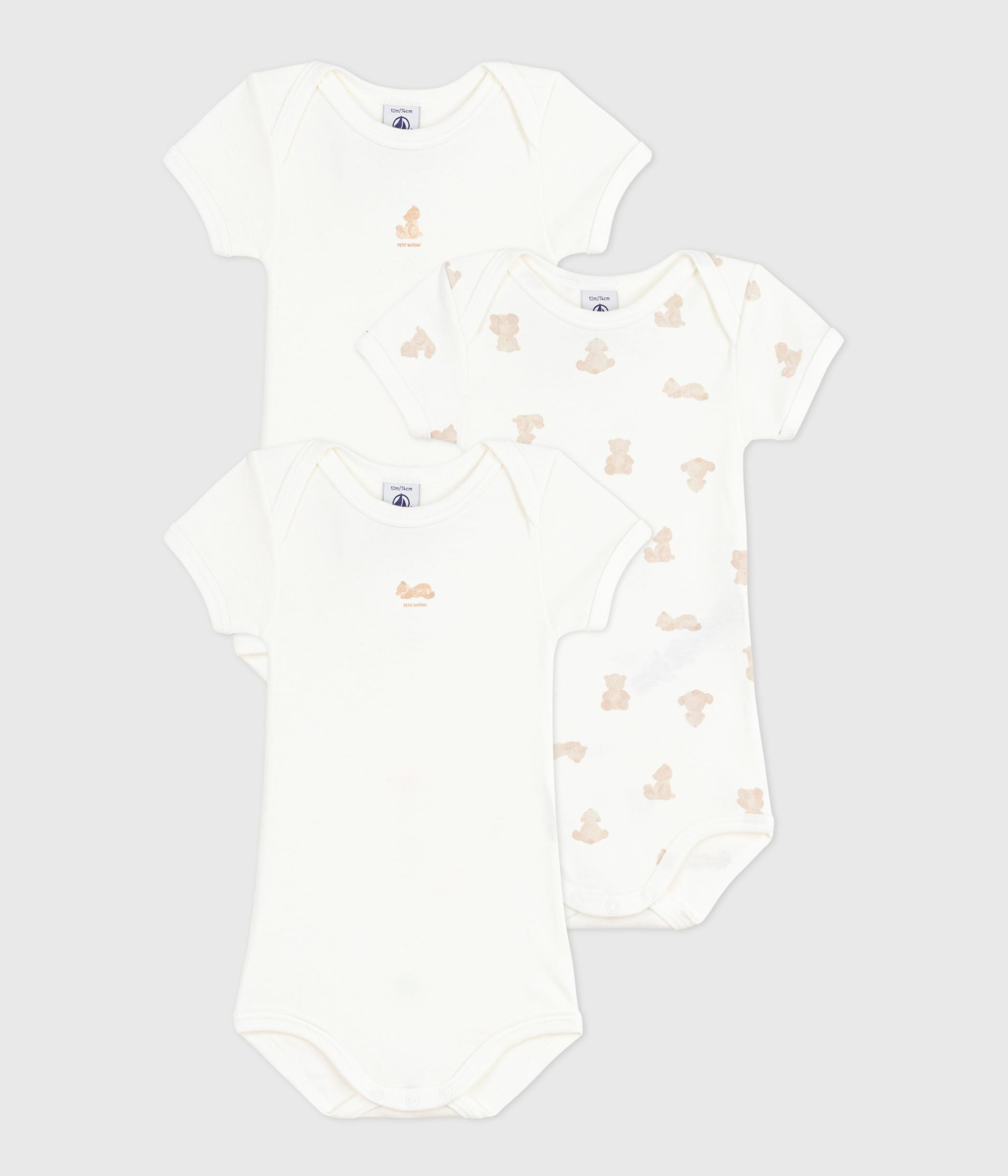 - The set includes two solid bodies with screen-printed designs and one body featuring an adorable bear print.