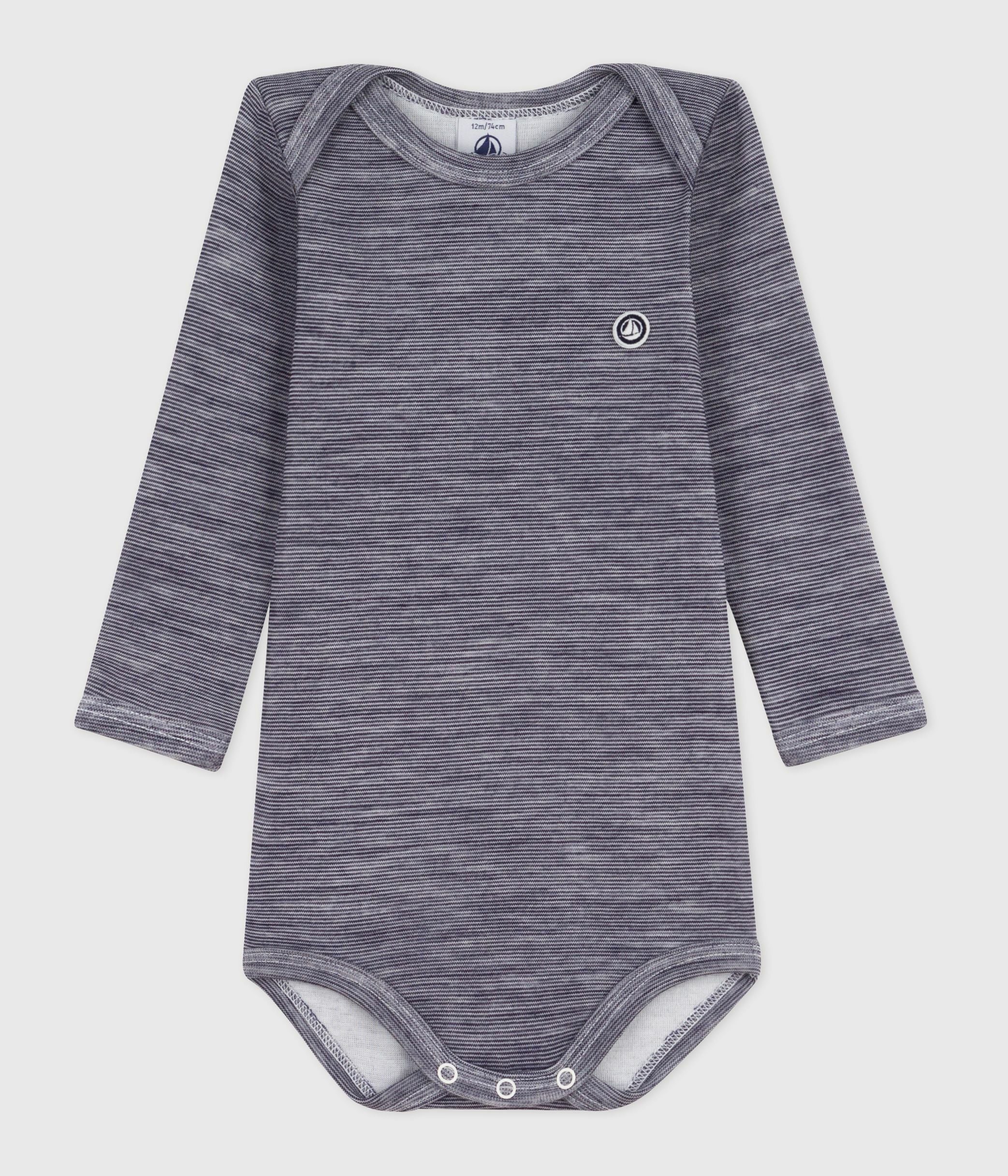 LONG-SLEEVE UNISEX STRIPED BODYSUIT IN WOOL AND COTTON, PERFECT FOR WINTER
