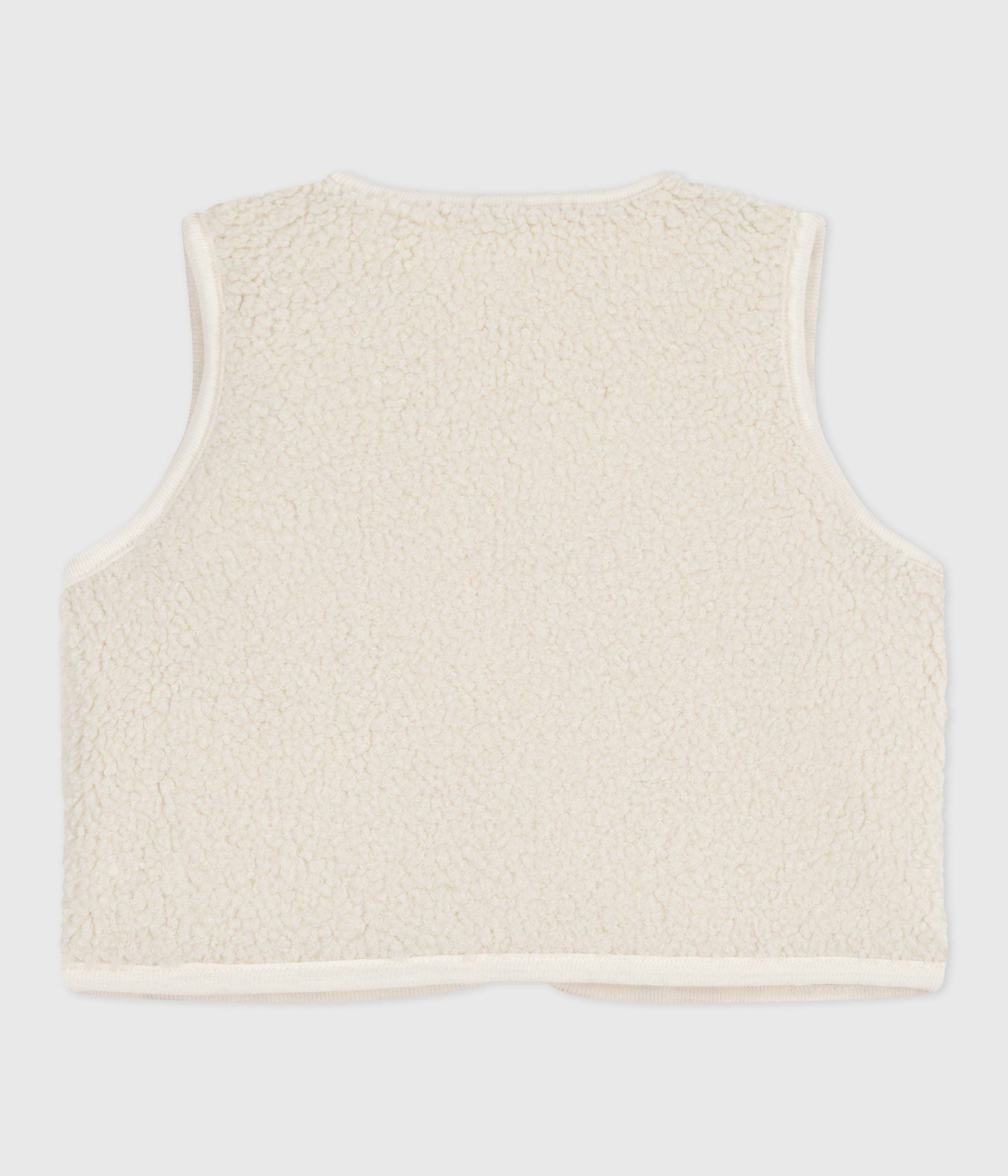 - Girls' reversible sleeveless quilted cardigan with one side in poplin and the other in sherpa.