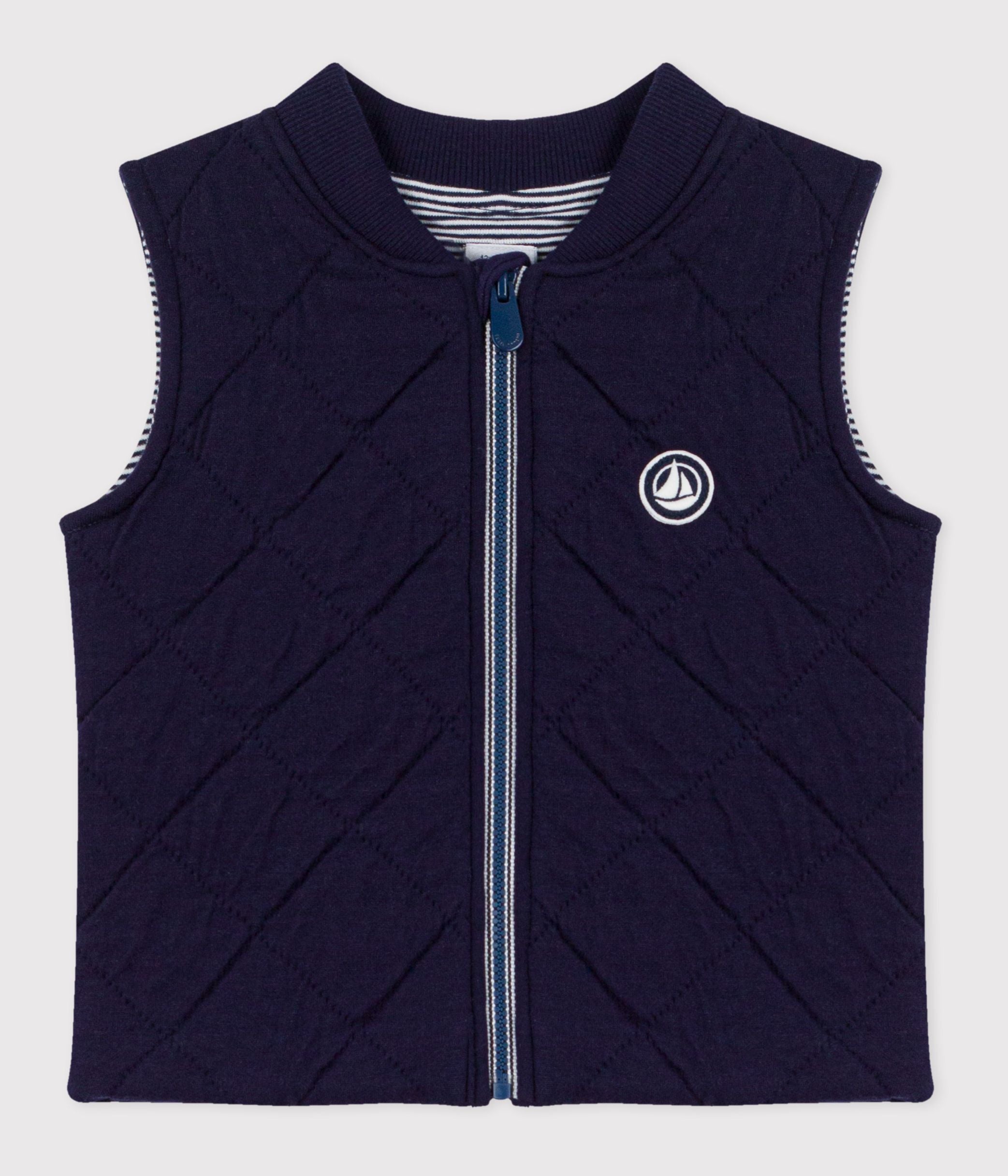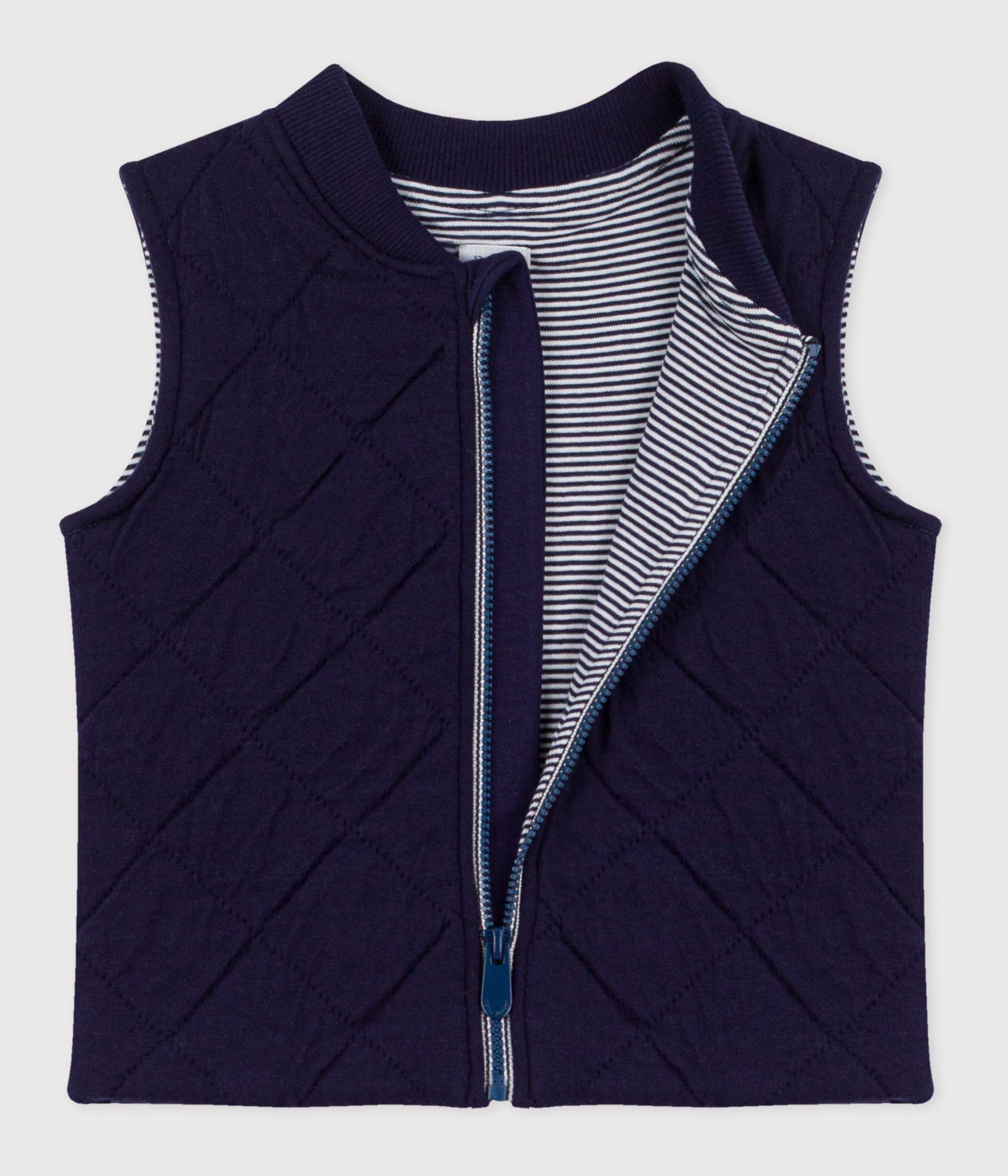 - Boys' puffer jacket made of soft, snuggly, quilted tube knit for maximum comfort.