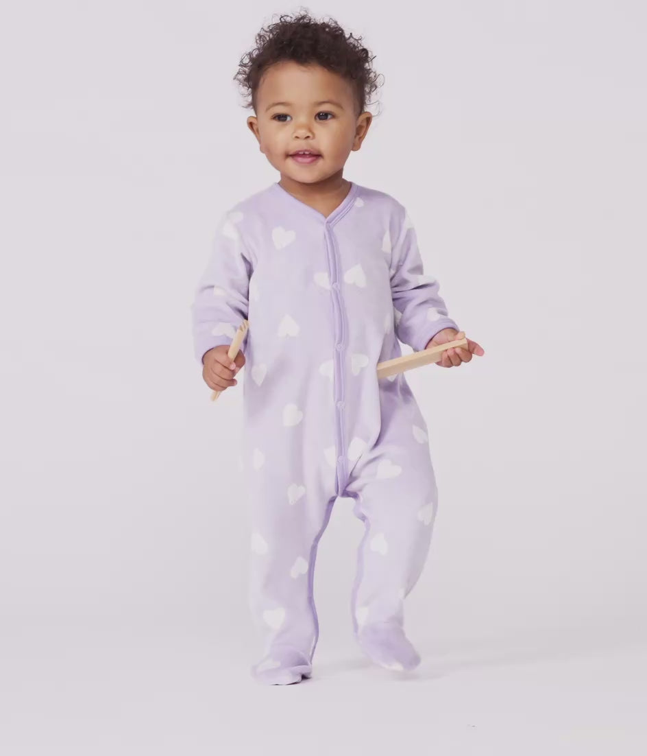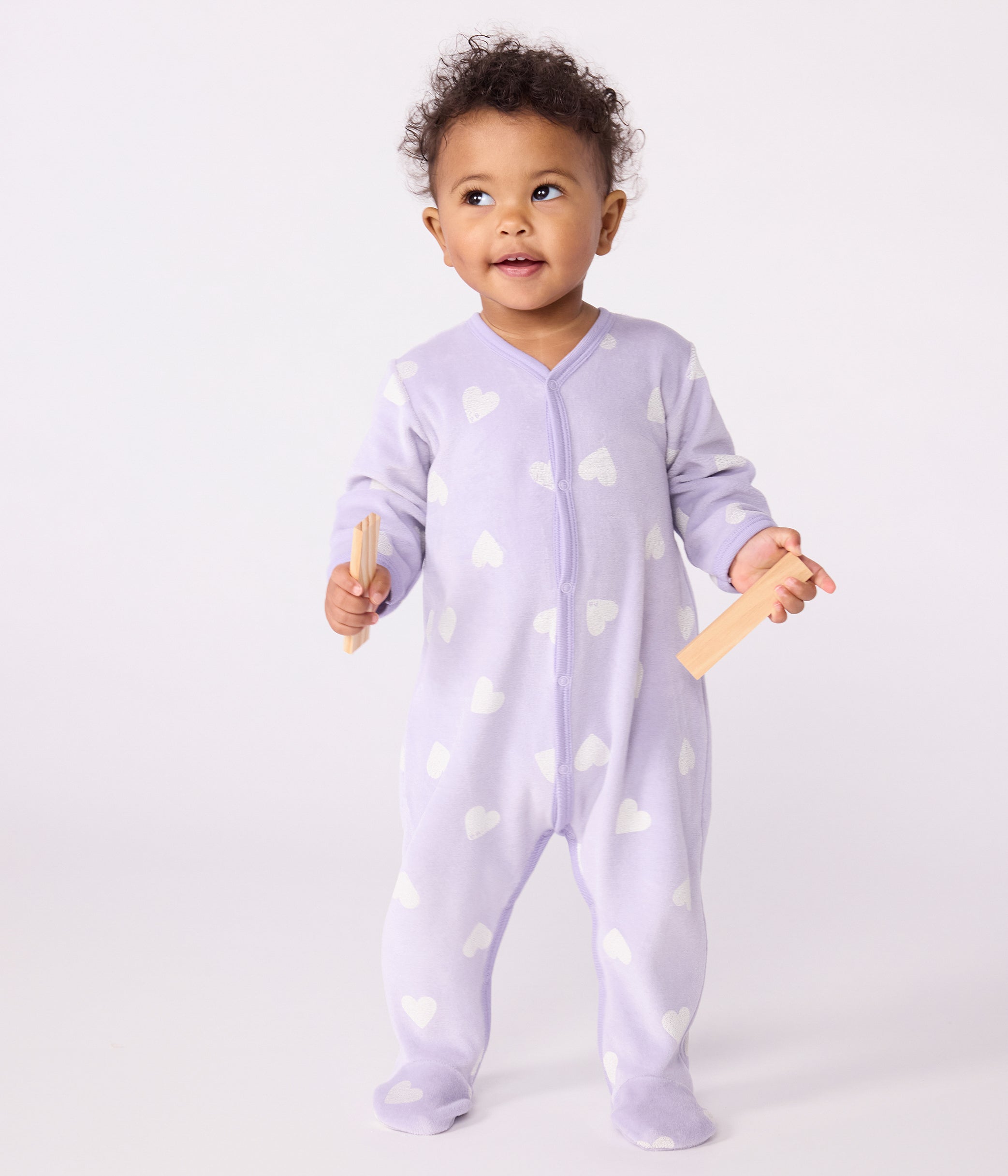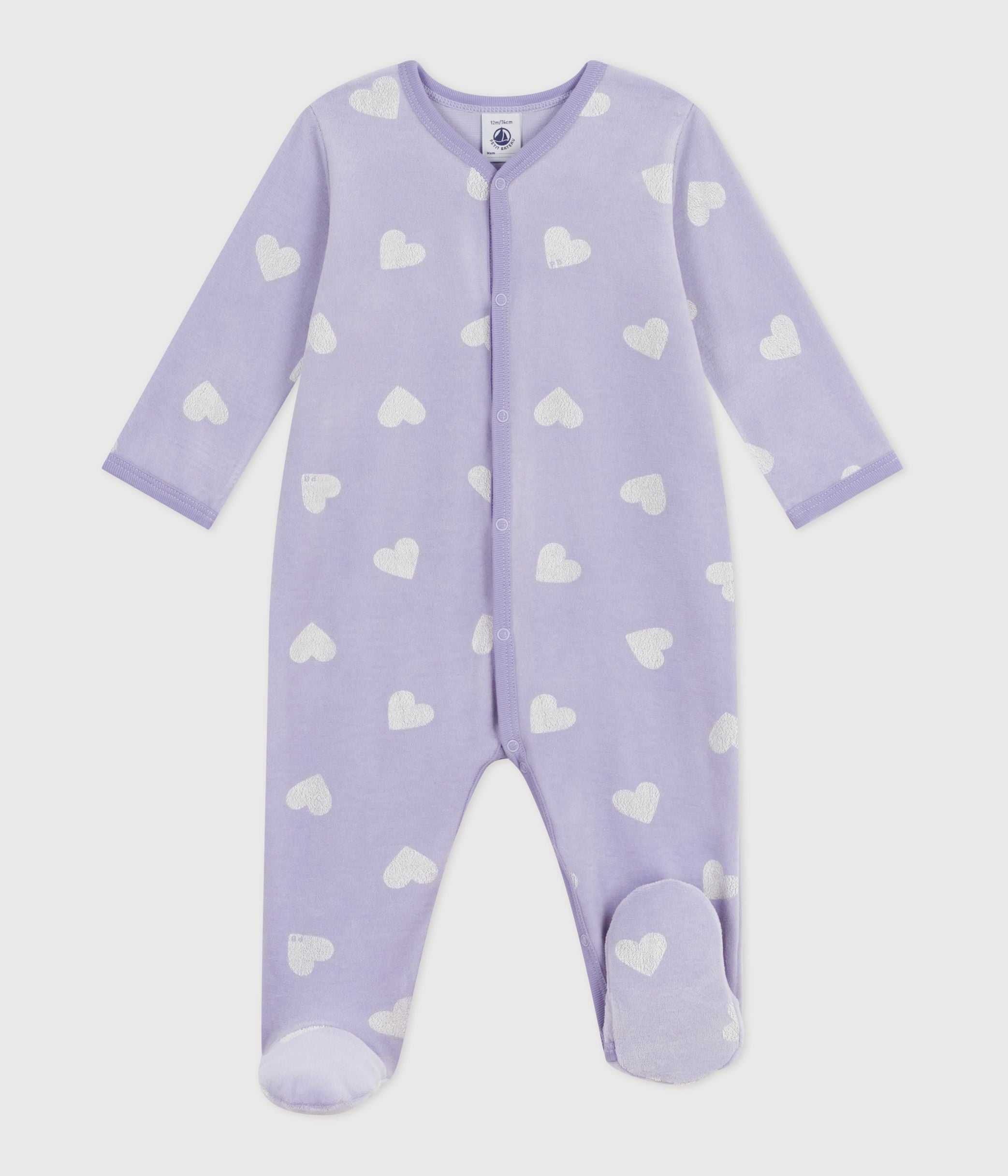 - The jumpsuit has snap button closures at the front and between the legs for easy dressing.