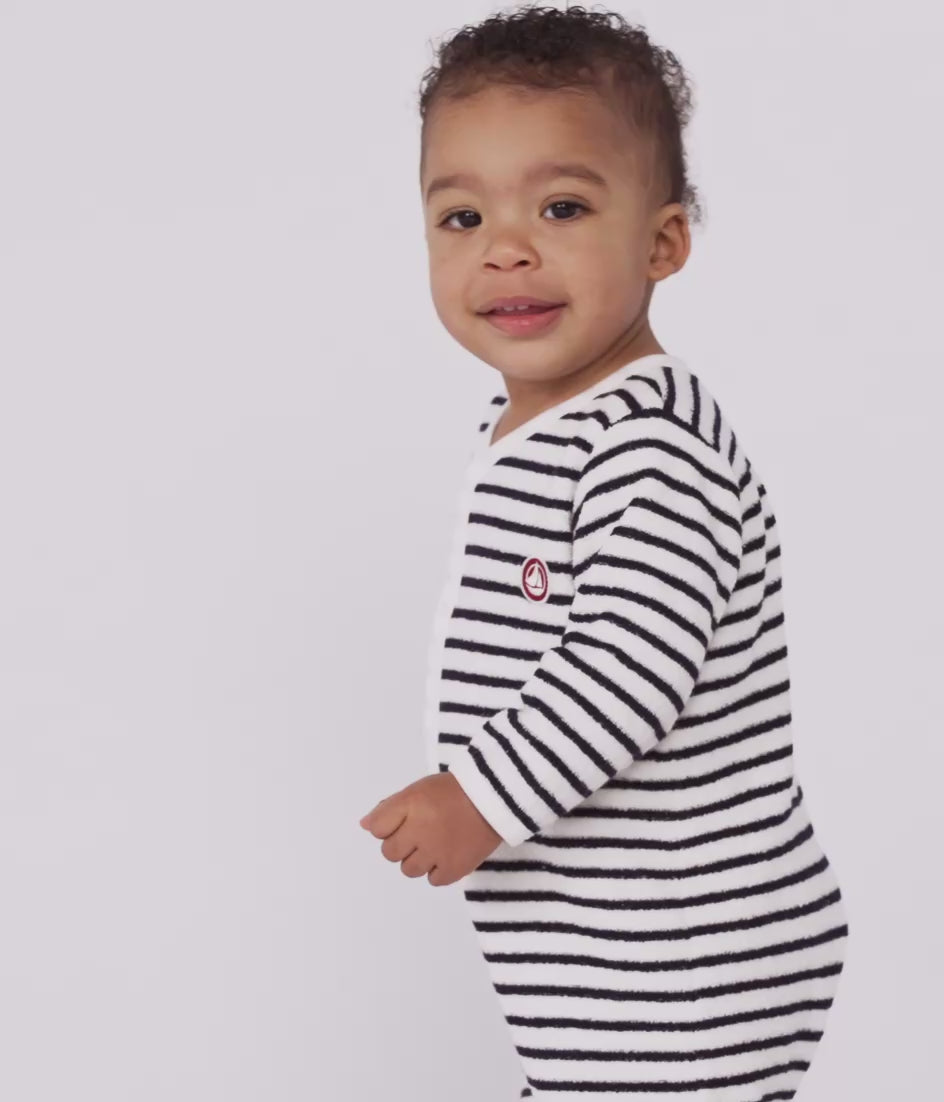 Babies' Stripy Printed Cotton Footless Pyjama Suit