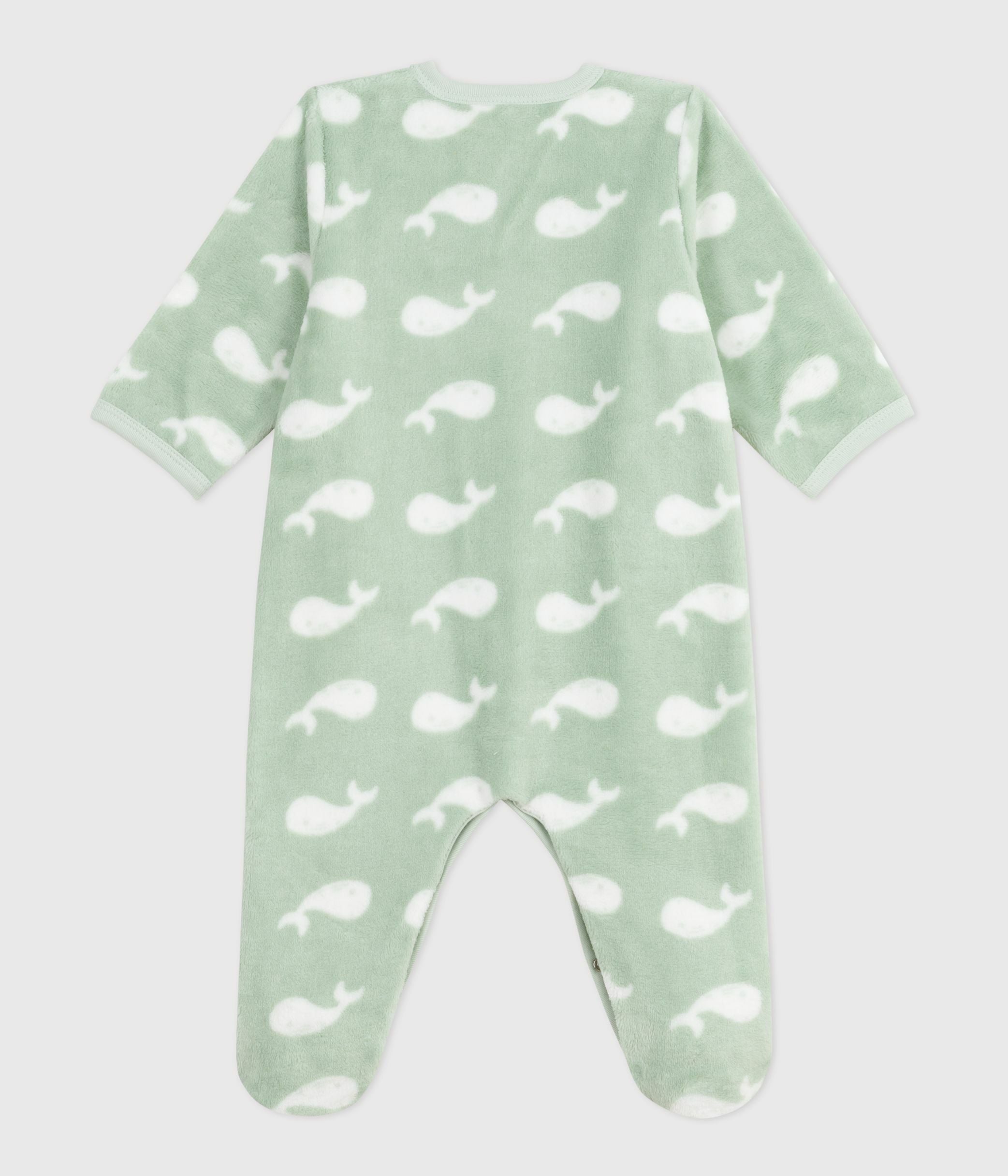 • The jumpsuit has snap button closures at the front and between the legs for easy dressing.