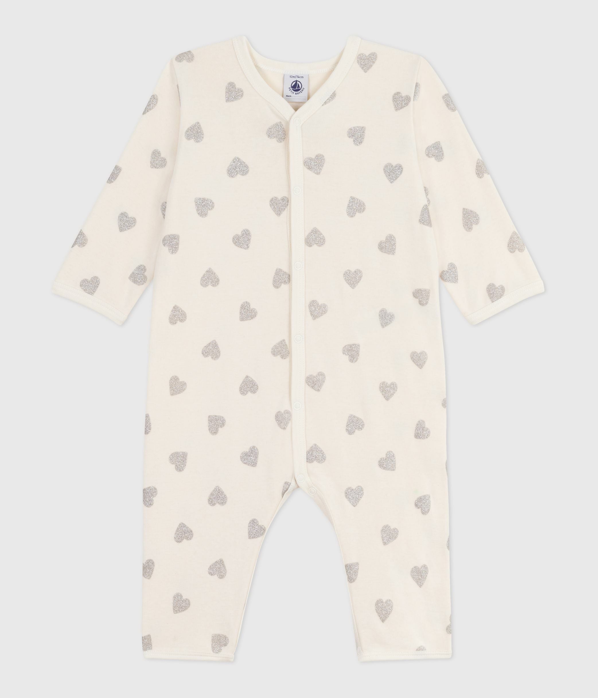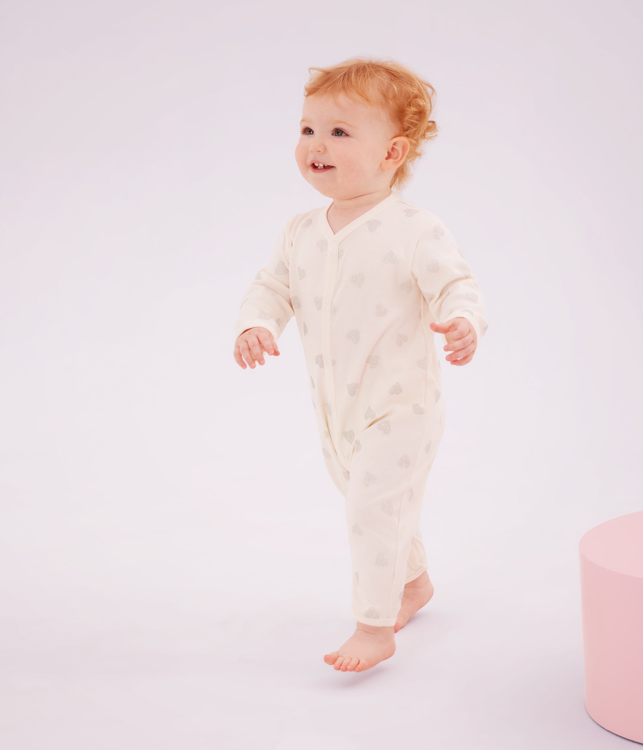 Babies' Heart Print Footless Cotton Pyjama Suit