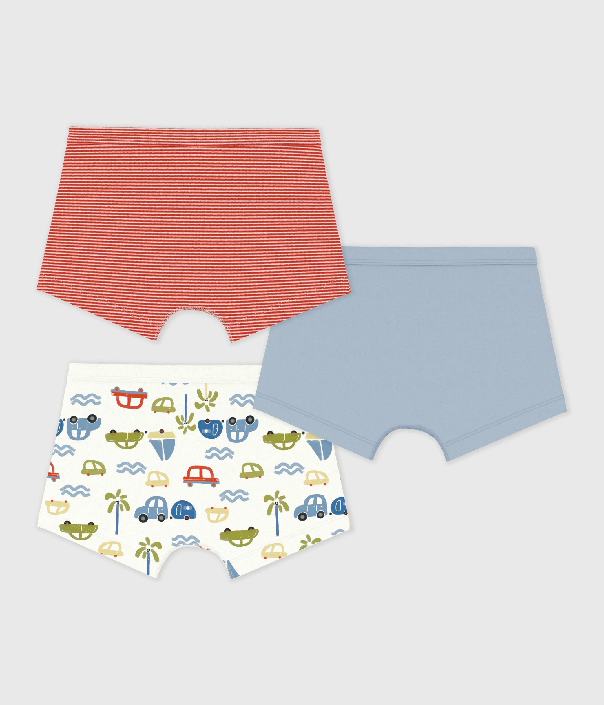 • This pack contains a pair of boxers in pinstripe 1x1 rib knit, a pair of plain 1x1 rib knit boxers and a pair of boxers with a car print.