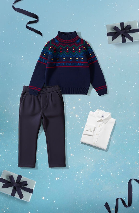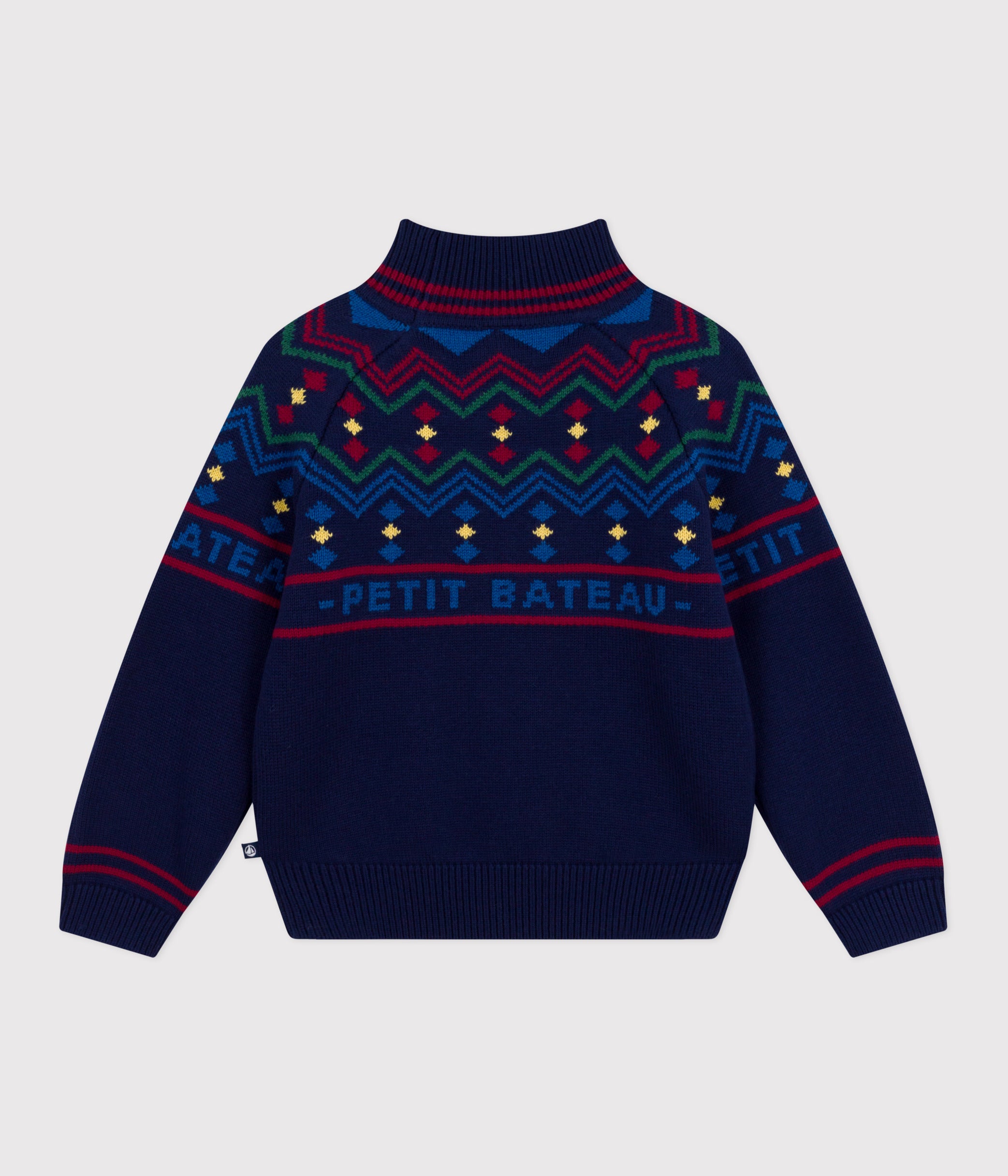 - Boys' wool jacquard knit jumper, soft and warm for winter.