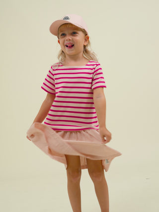 Girls' Short-Sleeved Thick Jersey and Cotton Gauze Dress