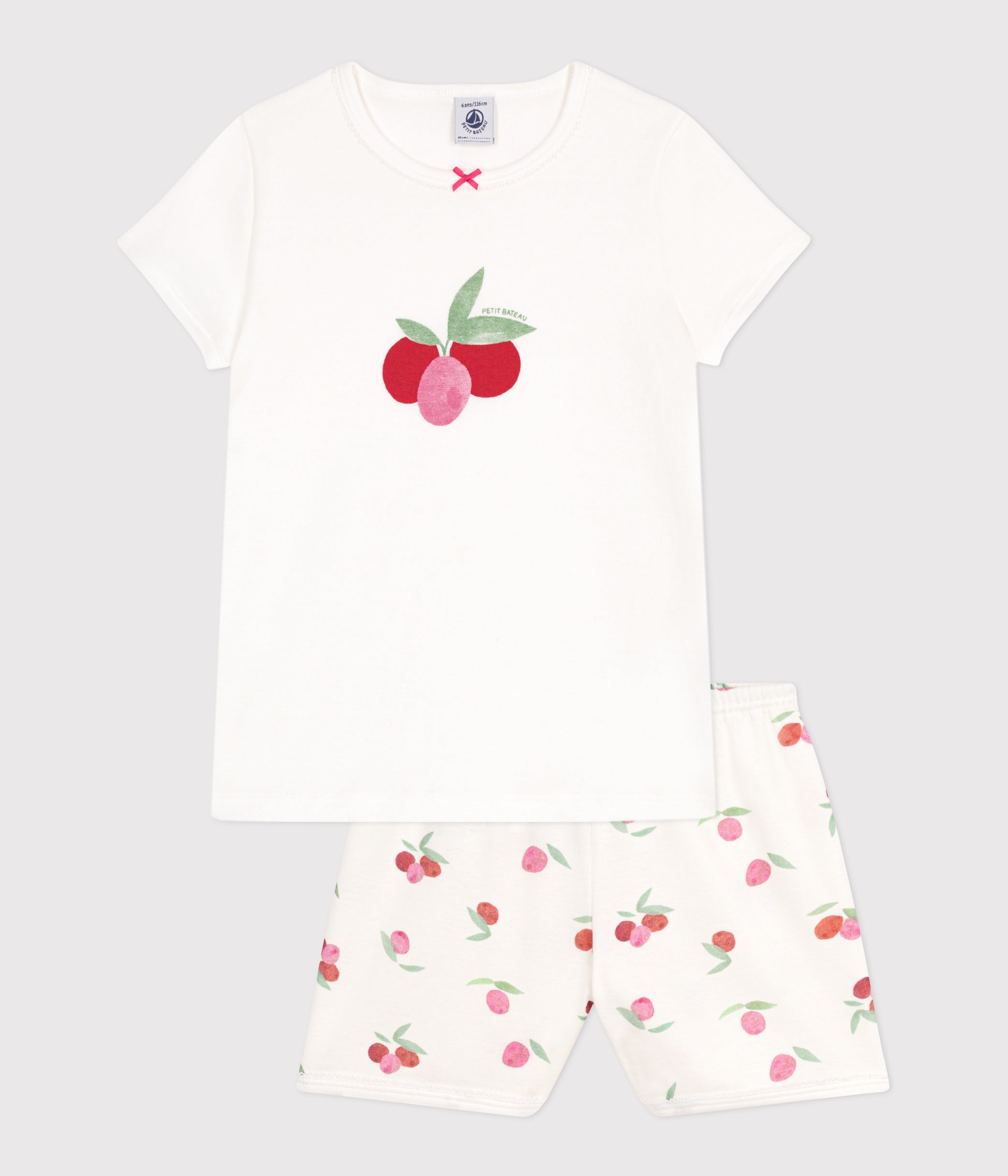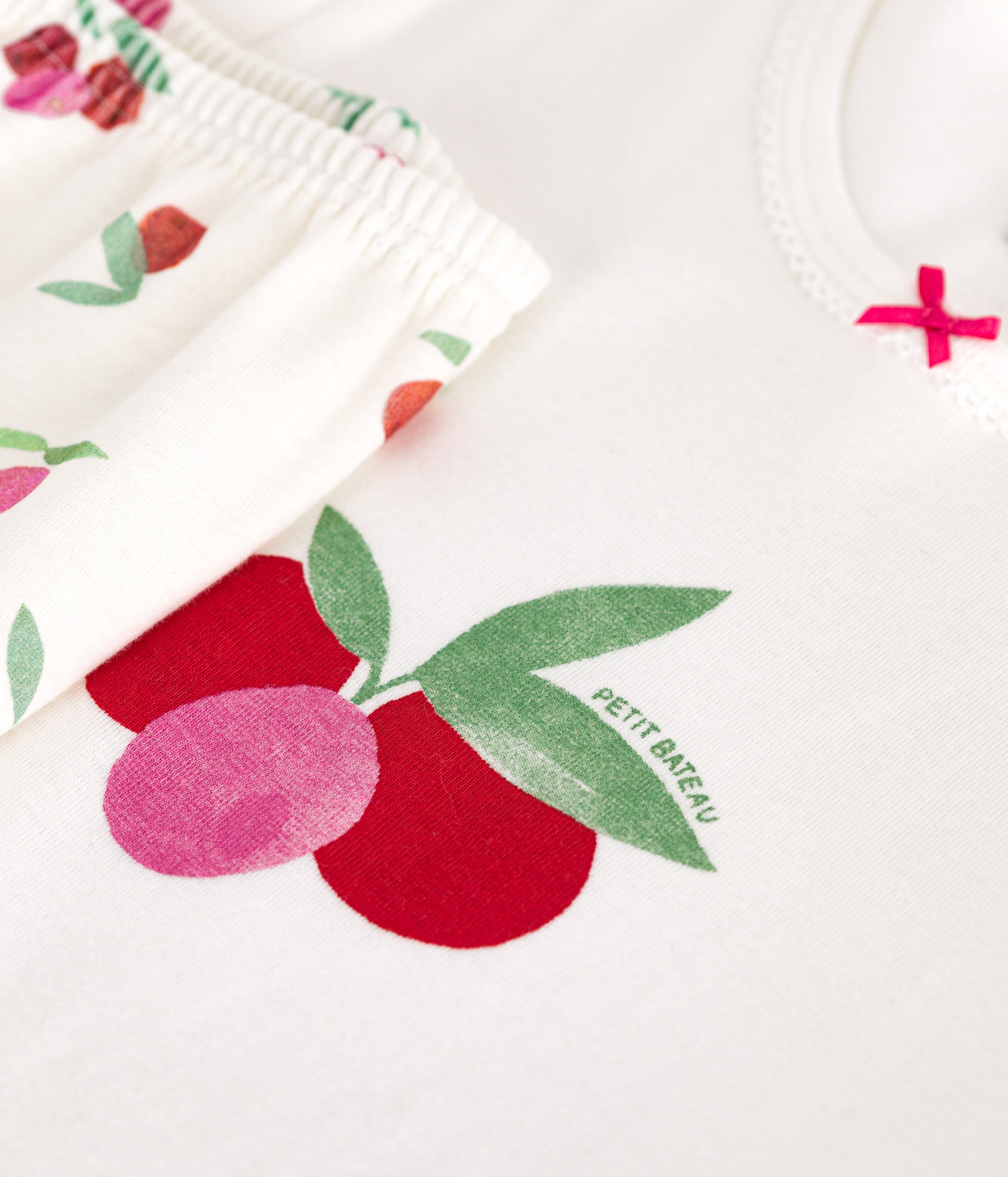 - The shorts are made from 1x1 rib knit with a fruit print.