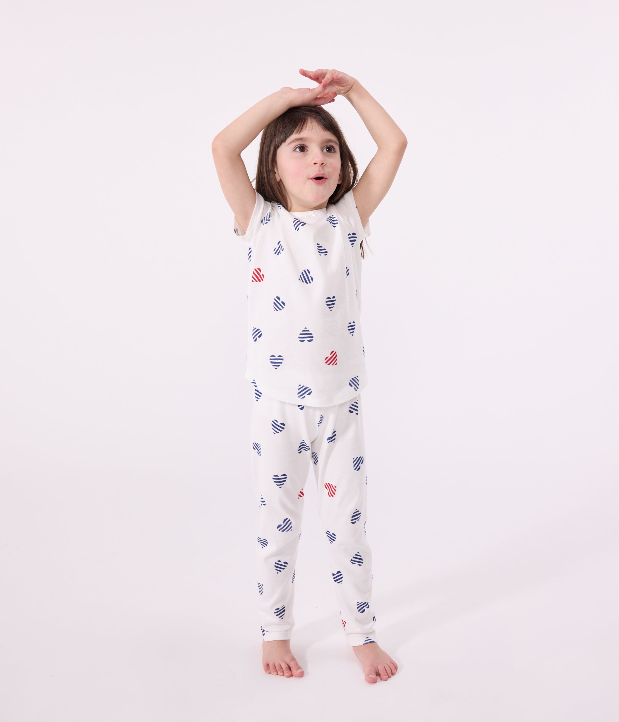 Children's Stripy Heart Print Short-Sleeved Cotton Pyjamas