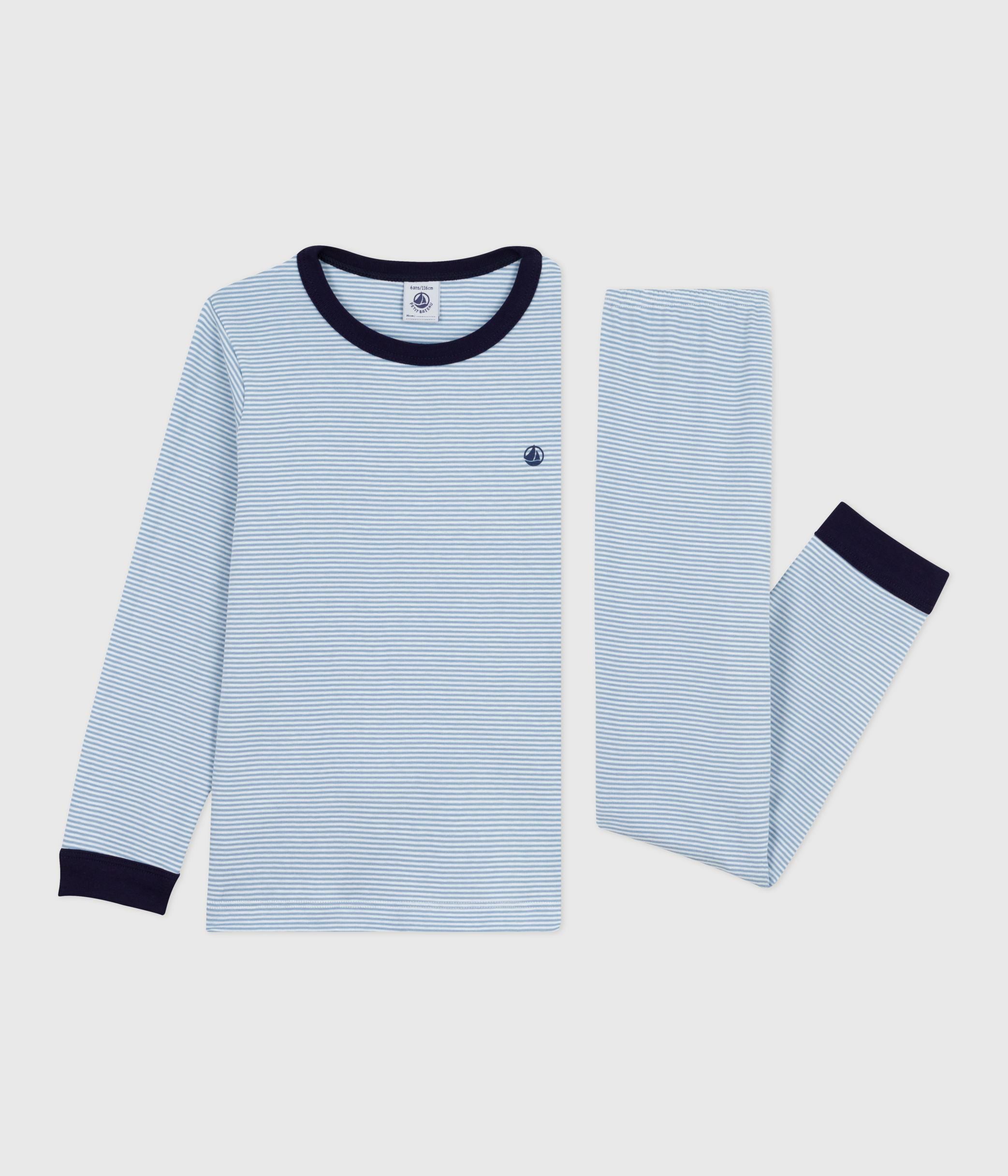 - Boys' pyjamas in pinstriped 1X1 rib knit, a stretchy, comfortable fabric.