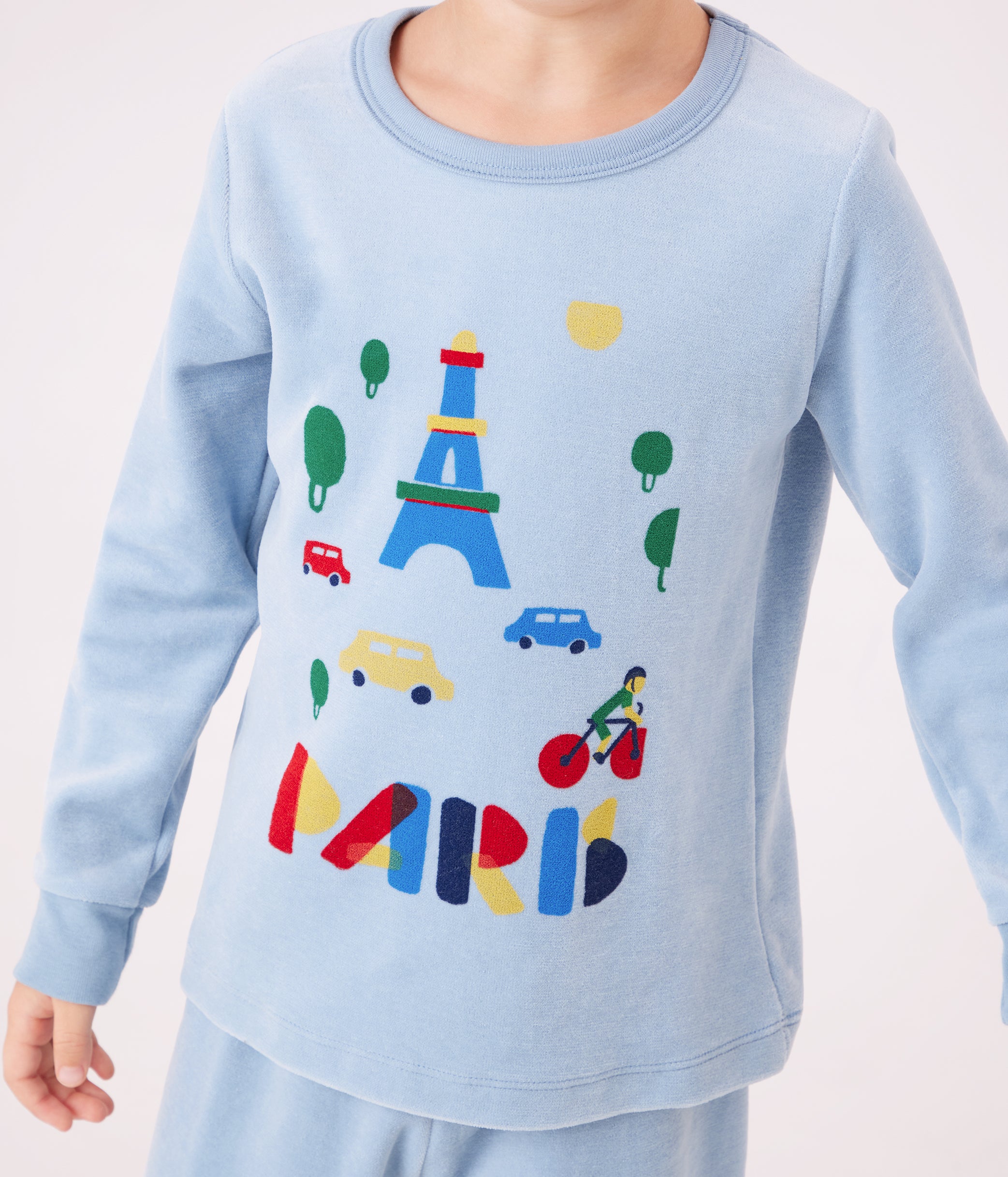 - Boys' pyjamas in terry velour, a warm and very stylish fabric.