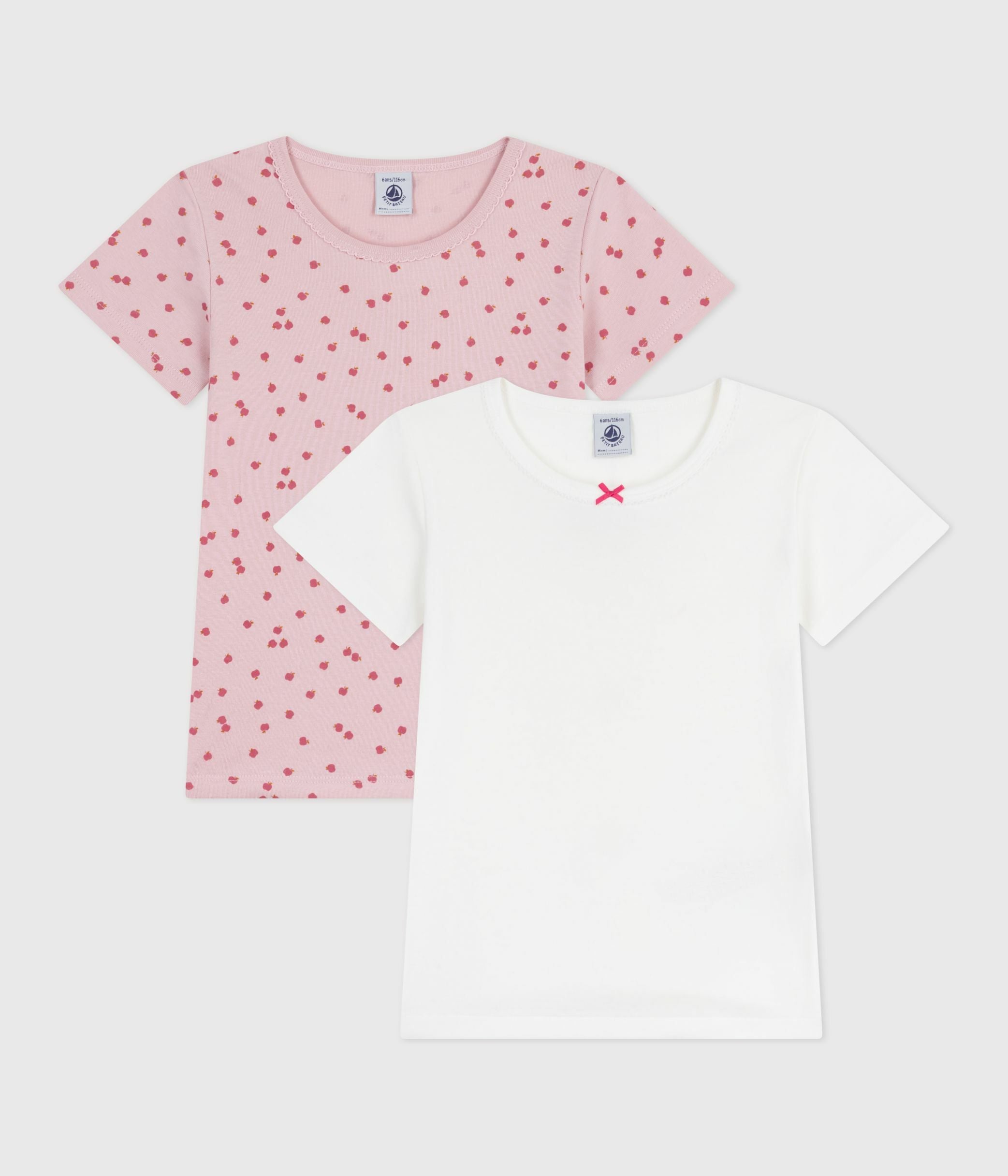 PACK OF 2 GIRLS' T-SHIRTS IN 1X1 RIB, A STRETCHY, COMFY FABRIC.
