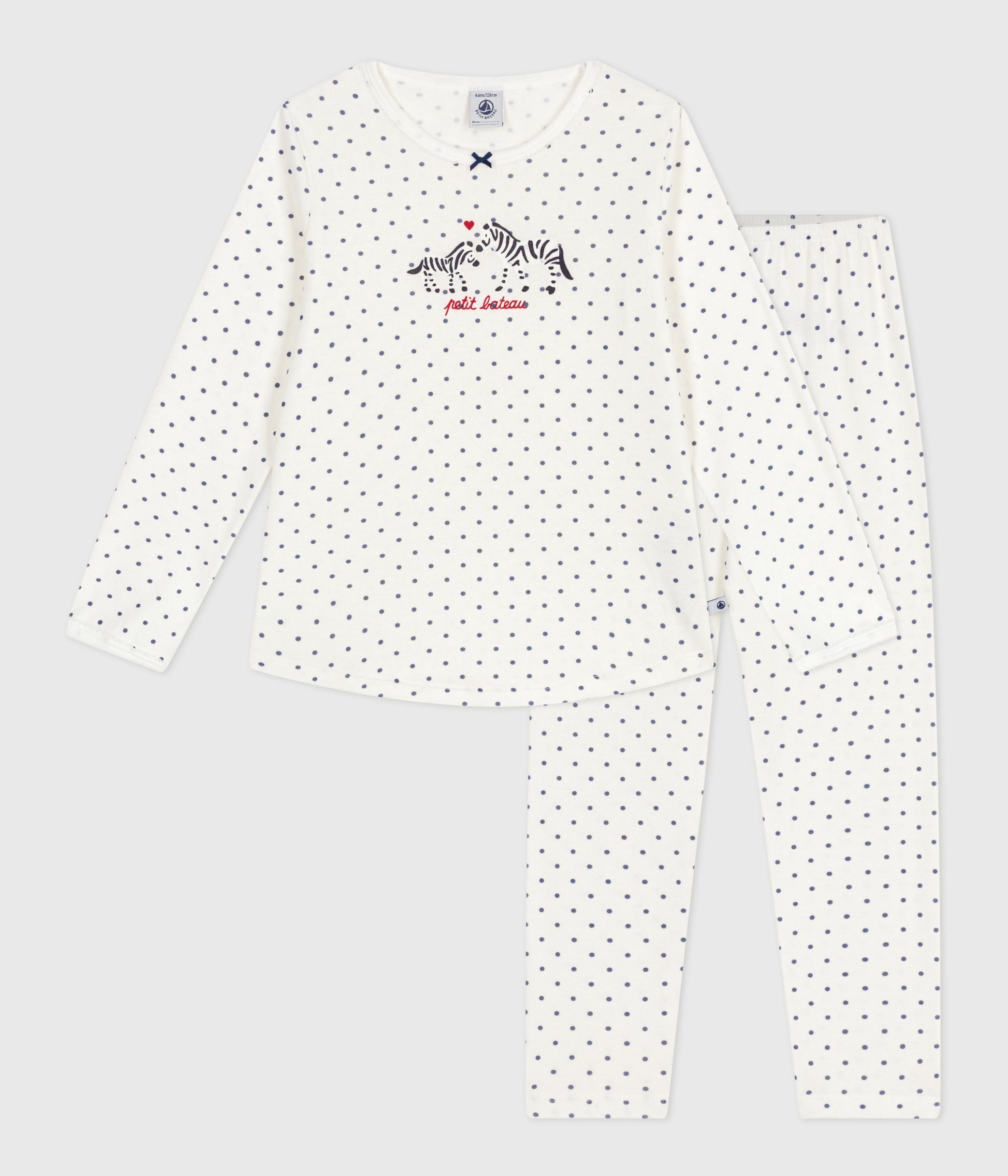 Children's Long-Sleeved Spotty Zebra Printed Cotton Pyjamas