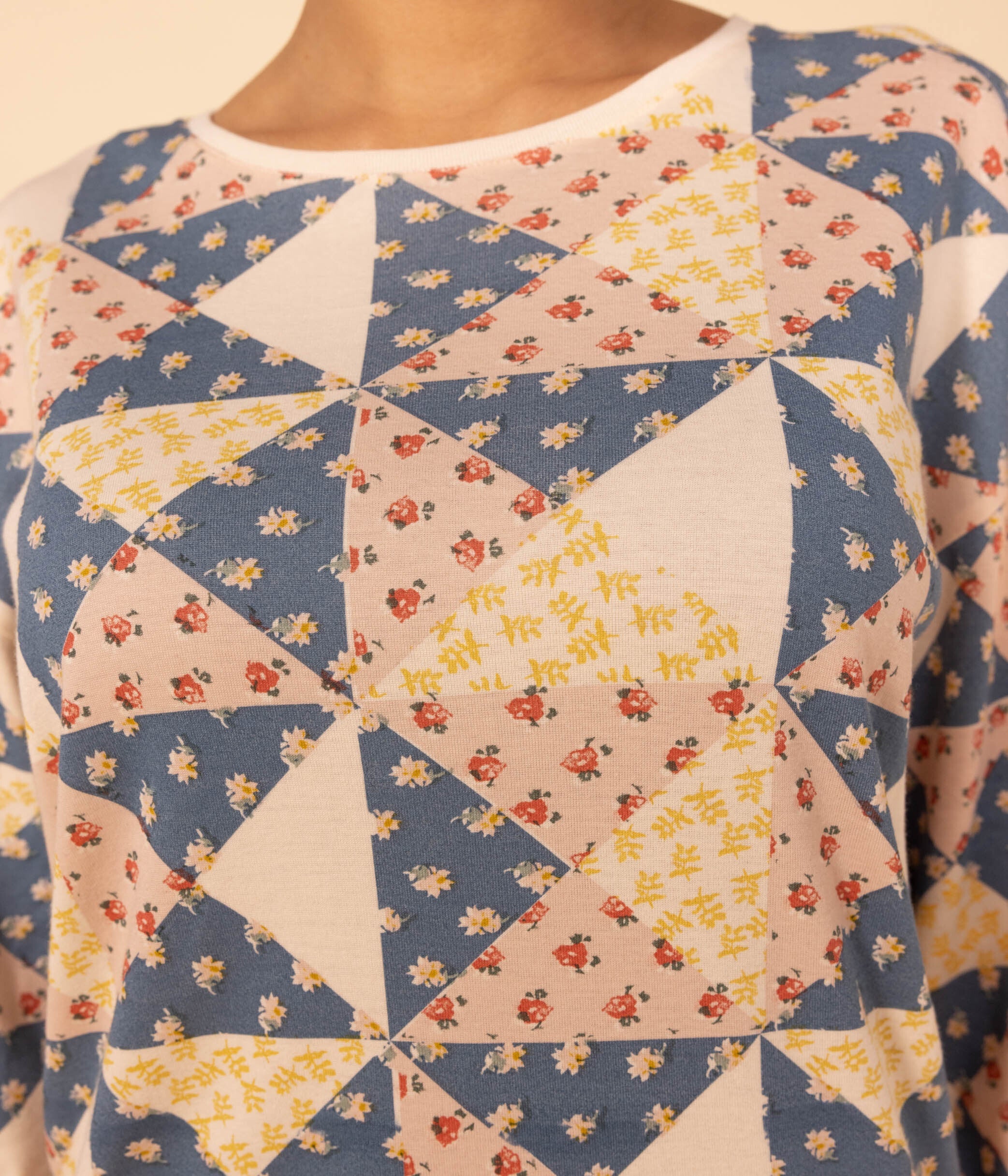 - Sweatshirt pyjama top with ribbed waist.