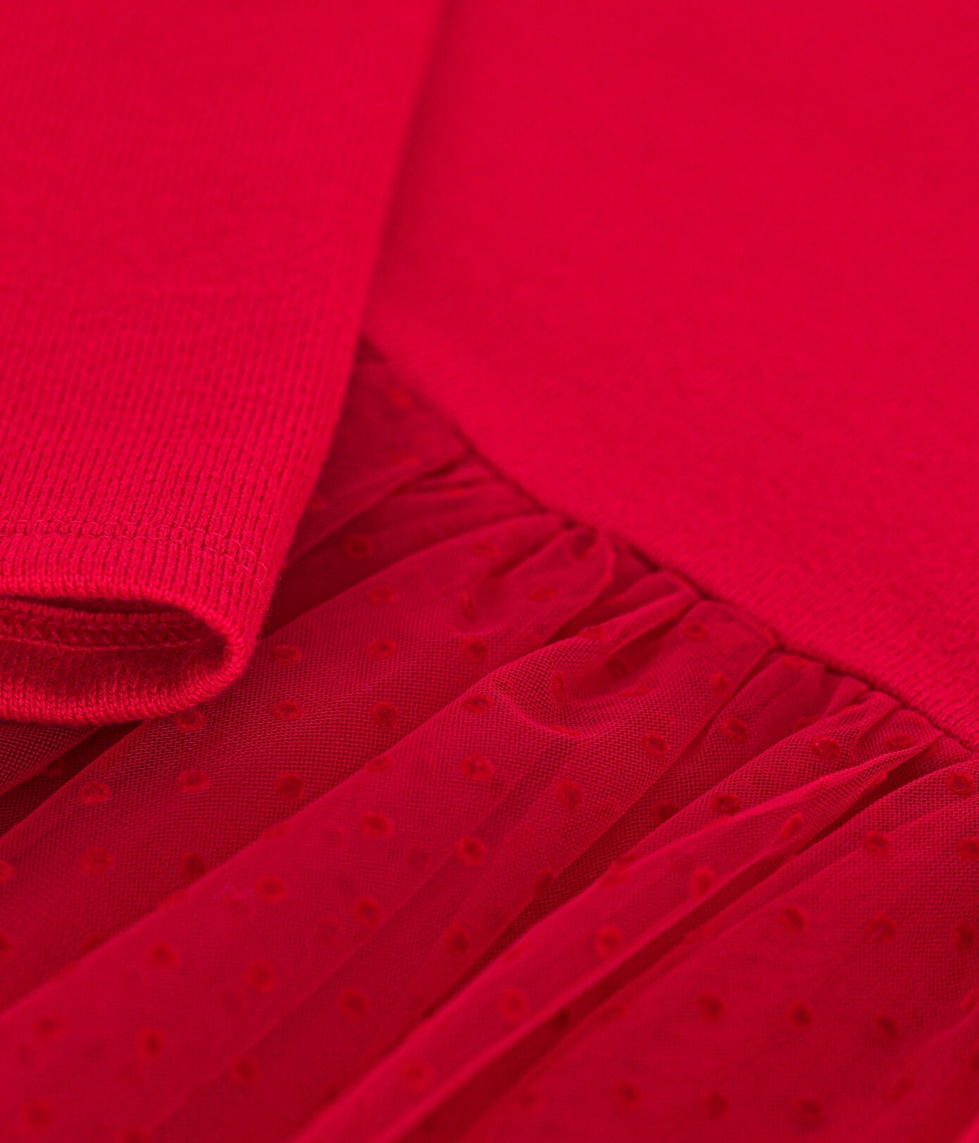 Festive ballerina-style dress in a two-tone fabric of thick cotton and tulle, ideal for the holiday season.