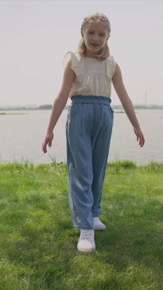 Girls' Elastic Waist Wide Leg Denim Style Pants