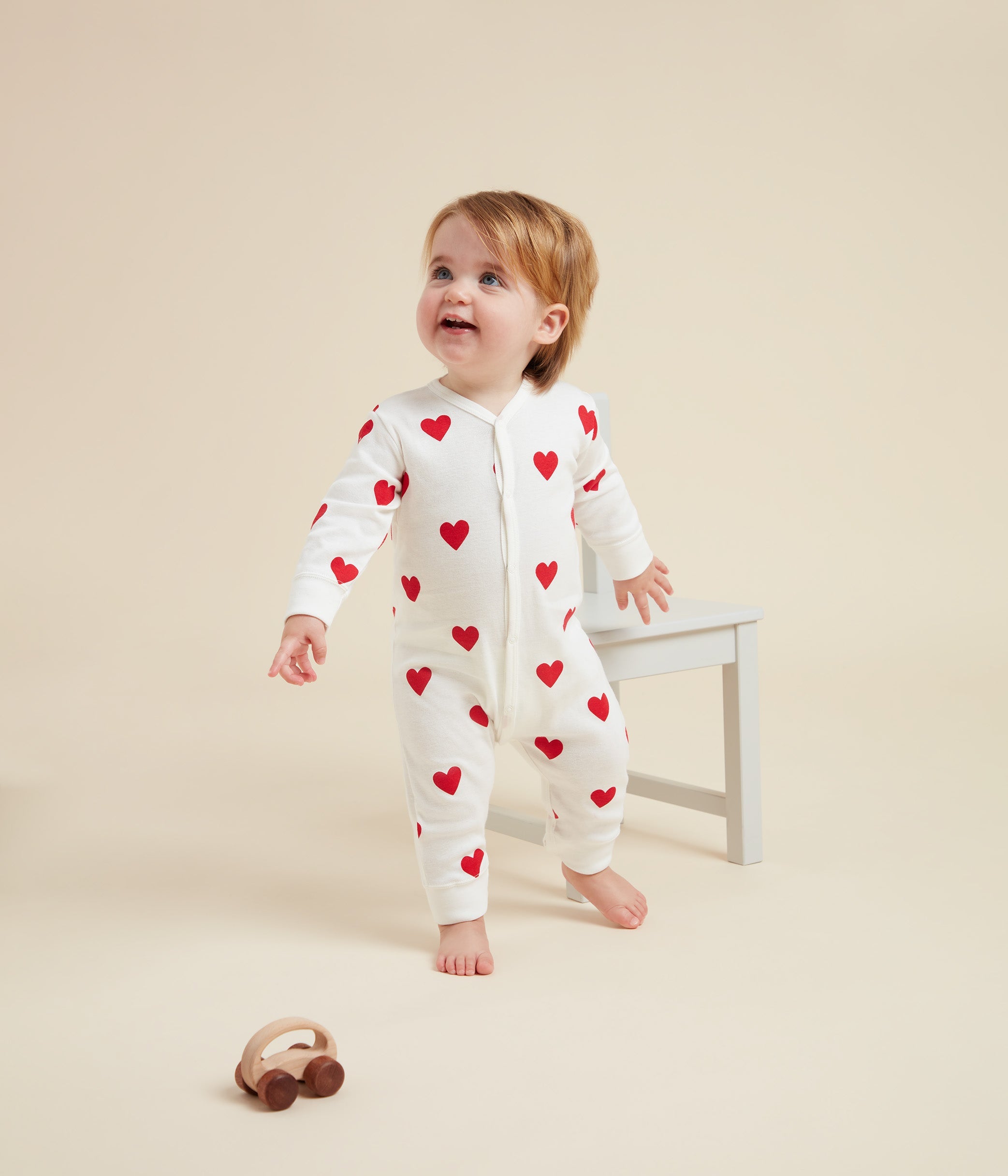 Babies' Heart Patterned Footless Cotton Sleepsuit