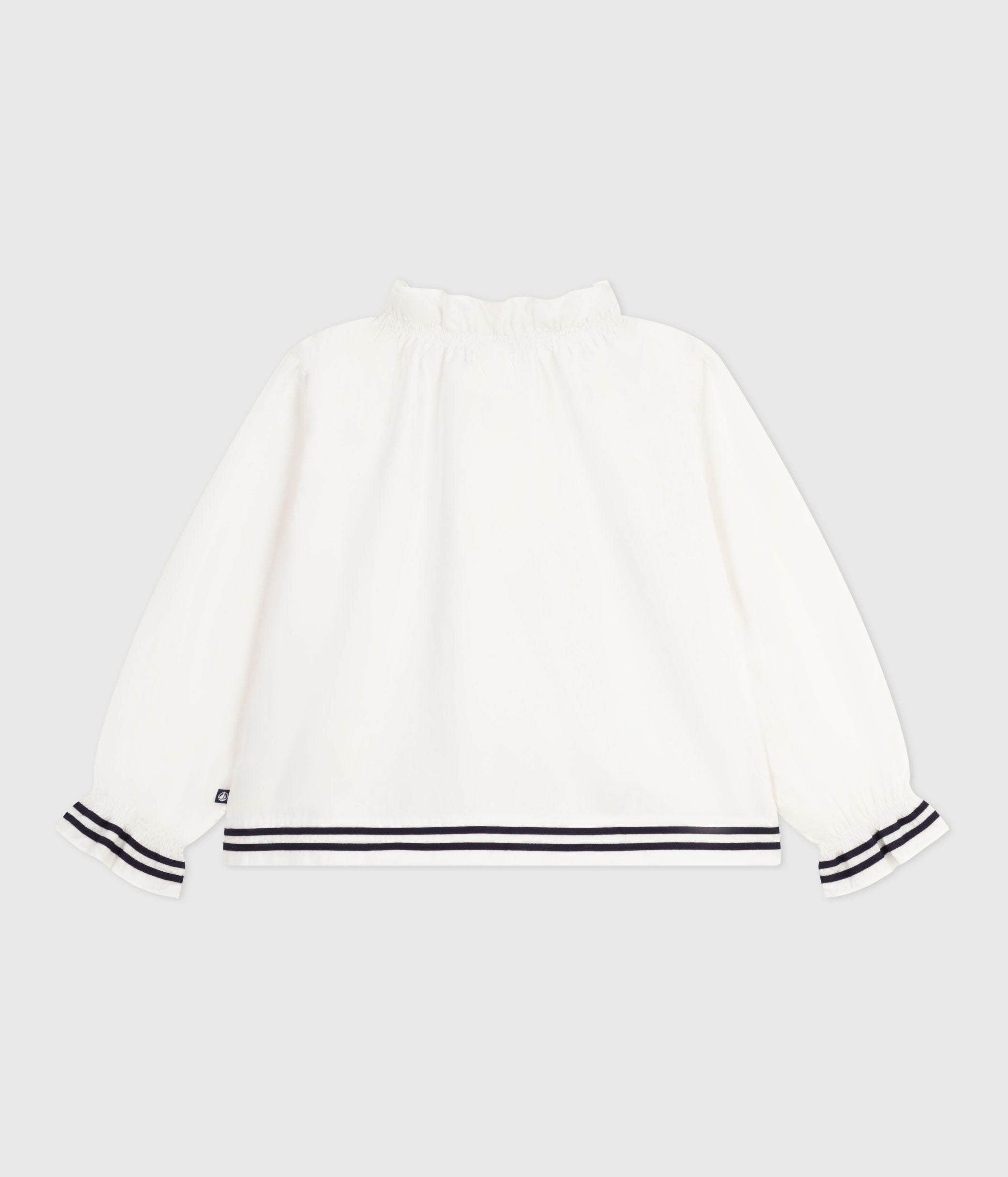 - Girls' blouse in patterned poplin, a fine, soft, lightweight fabric.