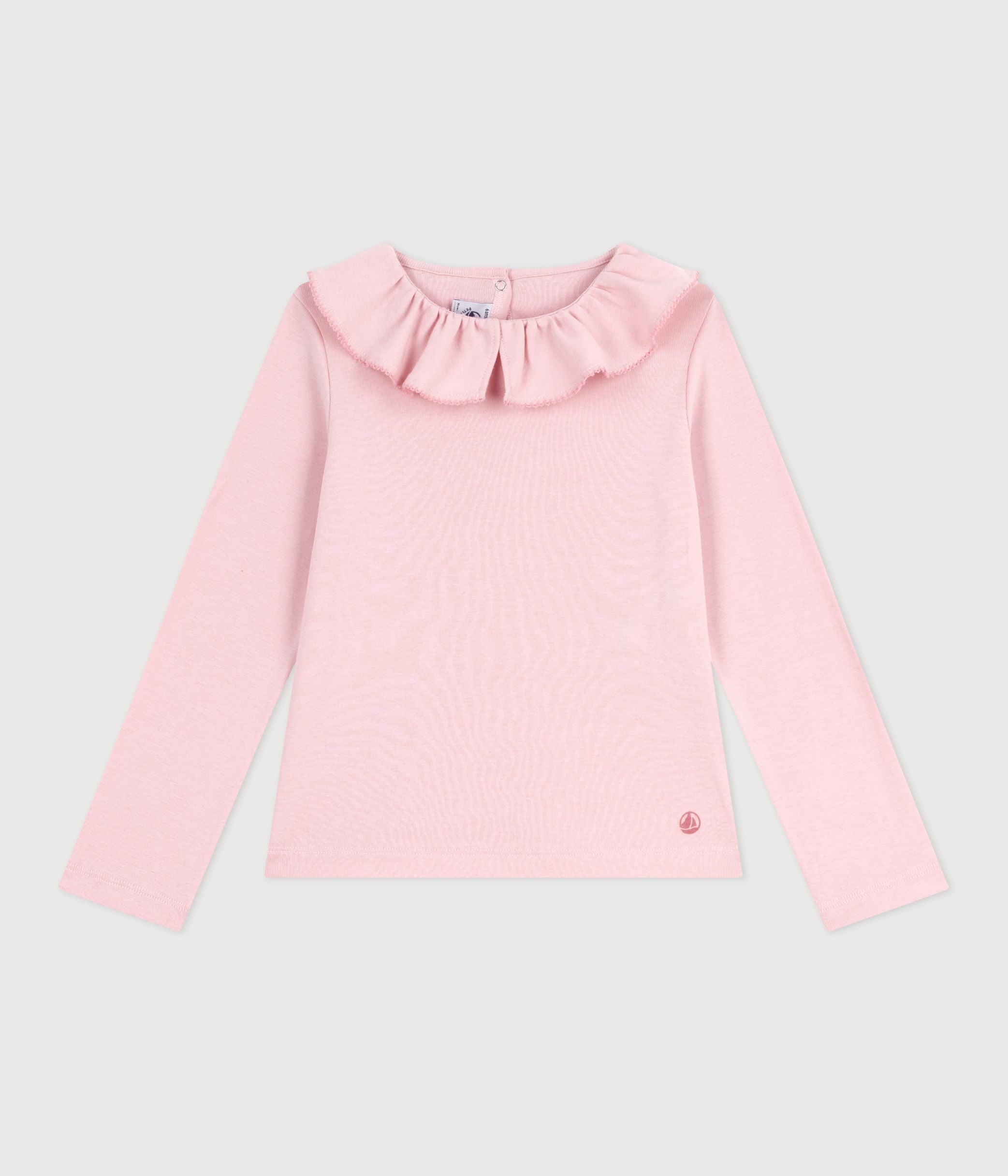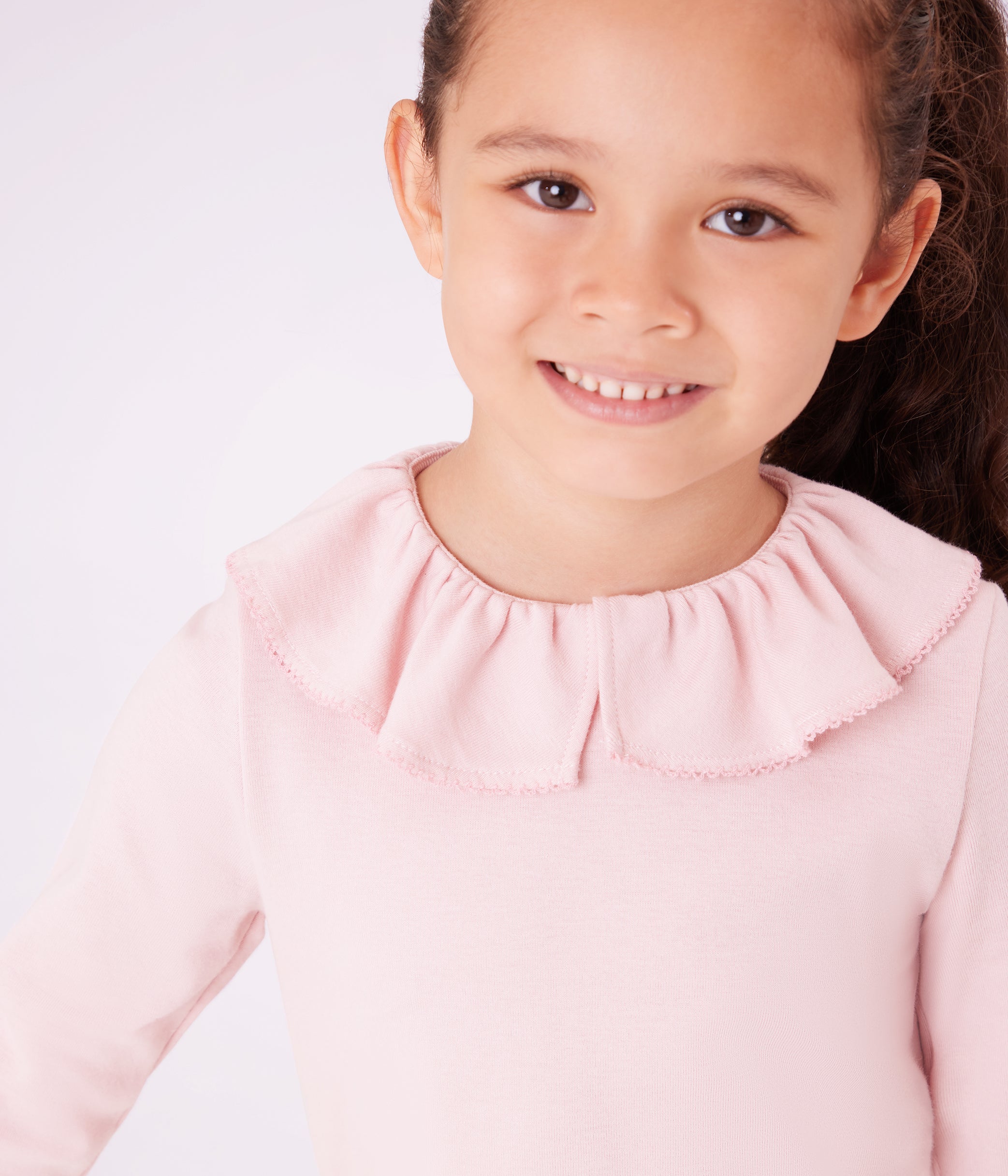 - Girls' T-shirt in 1x1 rib knit, a stretchy, comfortable fabric.