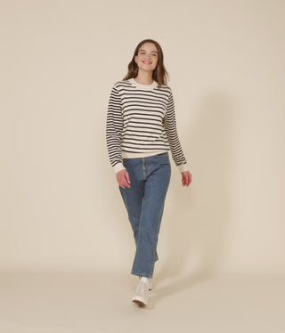 Women's Long-Sleeved Striped Wool and Cotton T-Shirt
