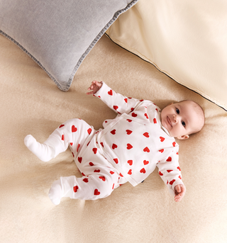 Babies' Padded Jacket in Embroidered Velour With a Pinstriped Lining