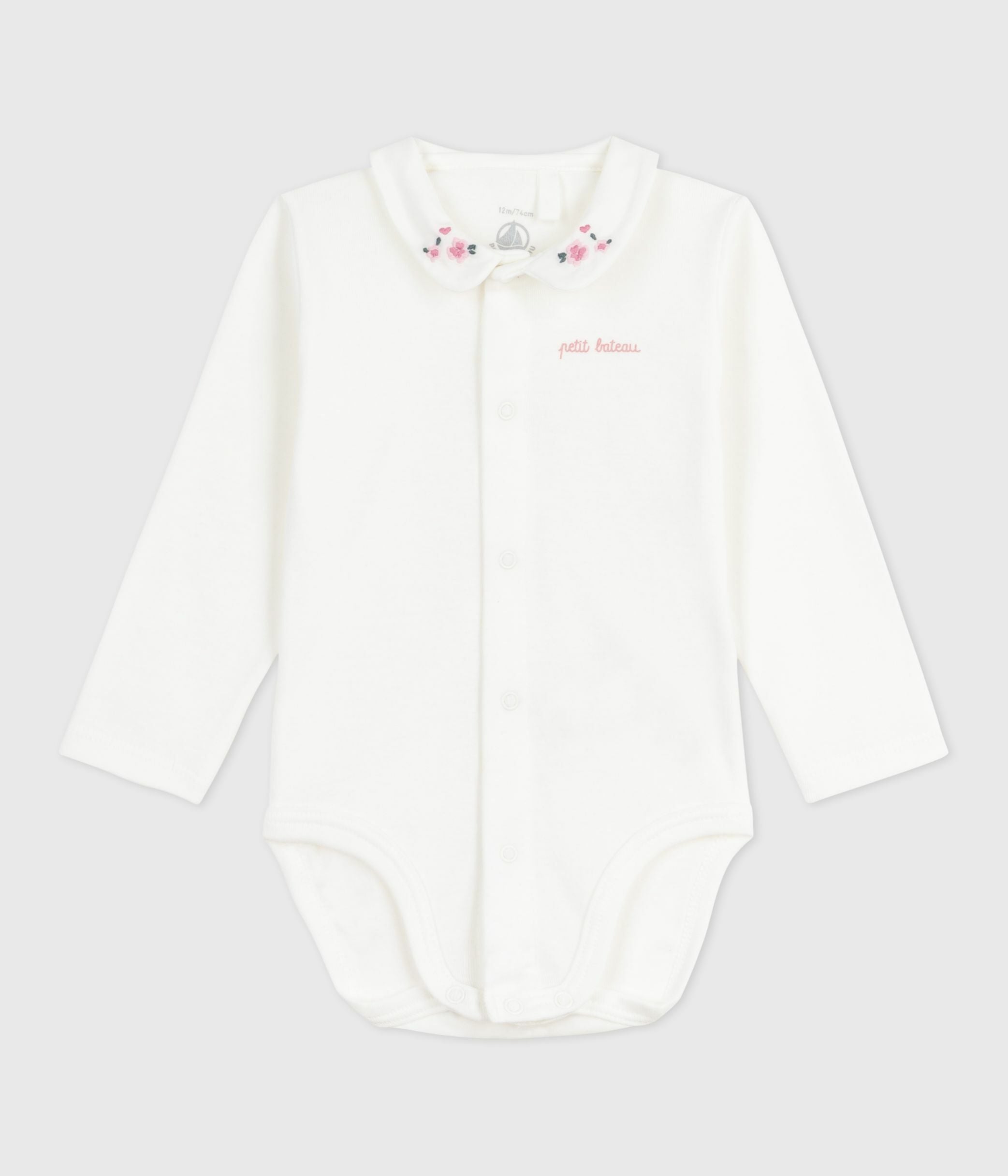 Babies' Bodysuit with An Embroidered Collar and A Message On The Chest