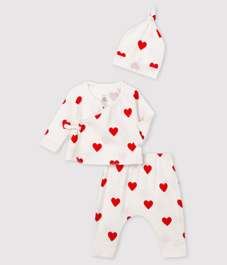 Babies' Short-Sleeved Cotton Dress With an Integrated Triple Heart Pattern Body
