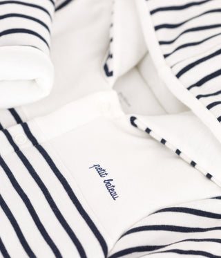 Babies' Breton-Stripe Padded Playsuit With a Hood and Feet