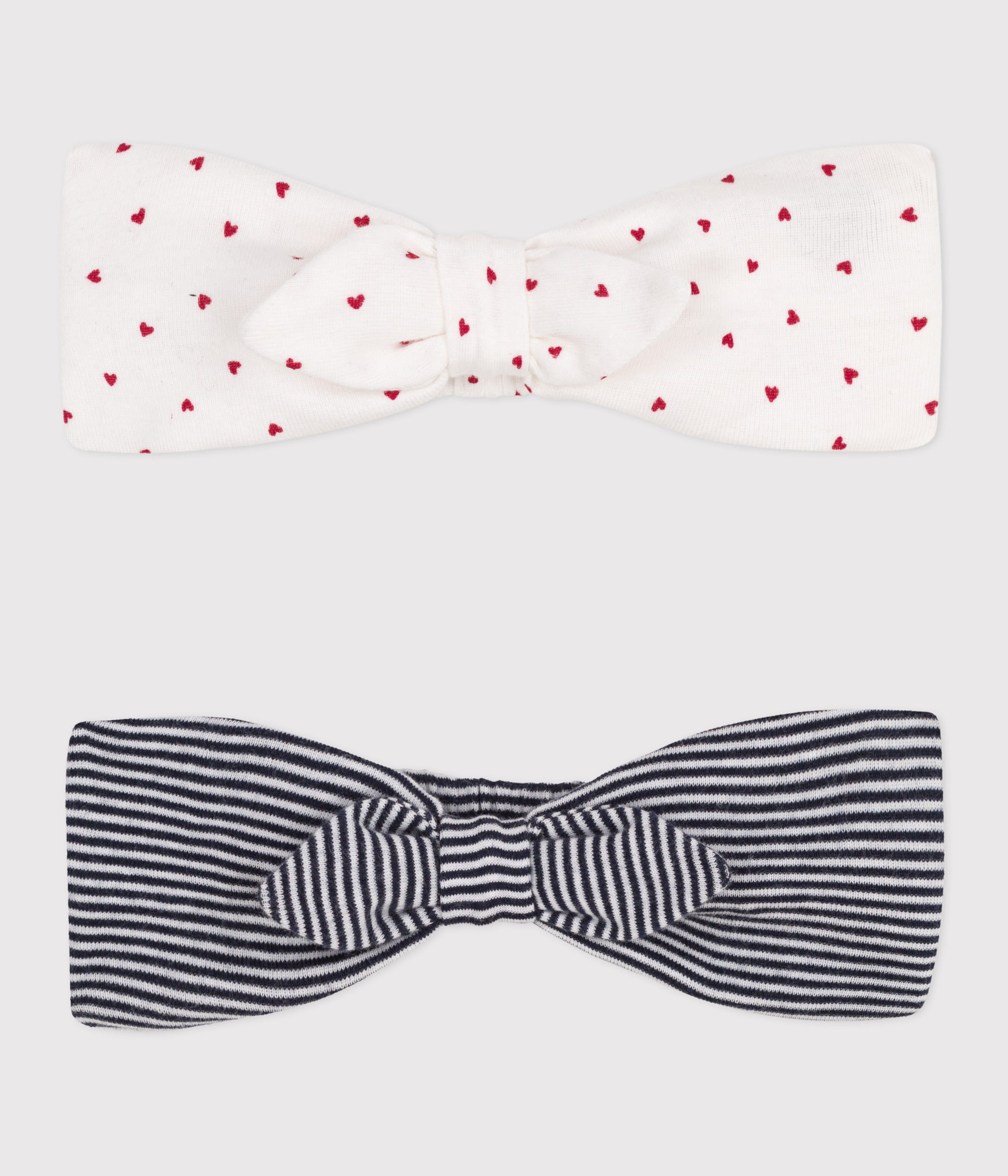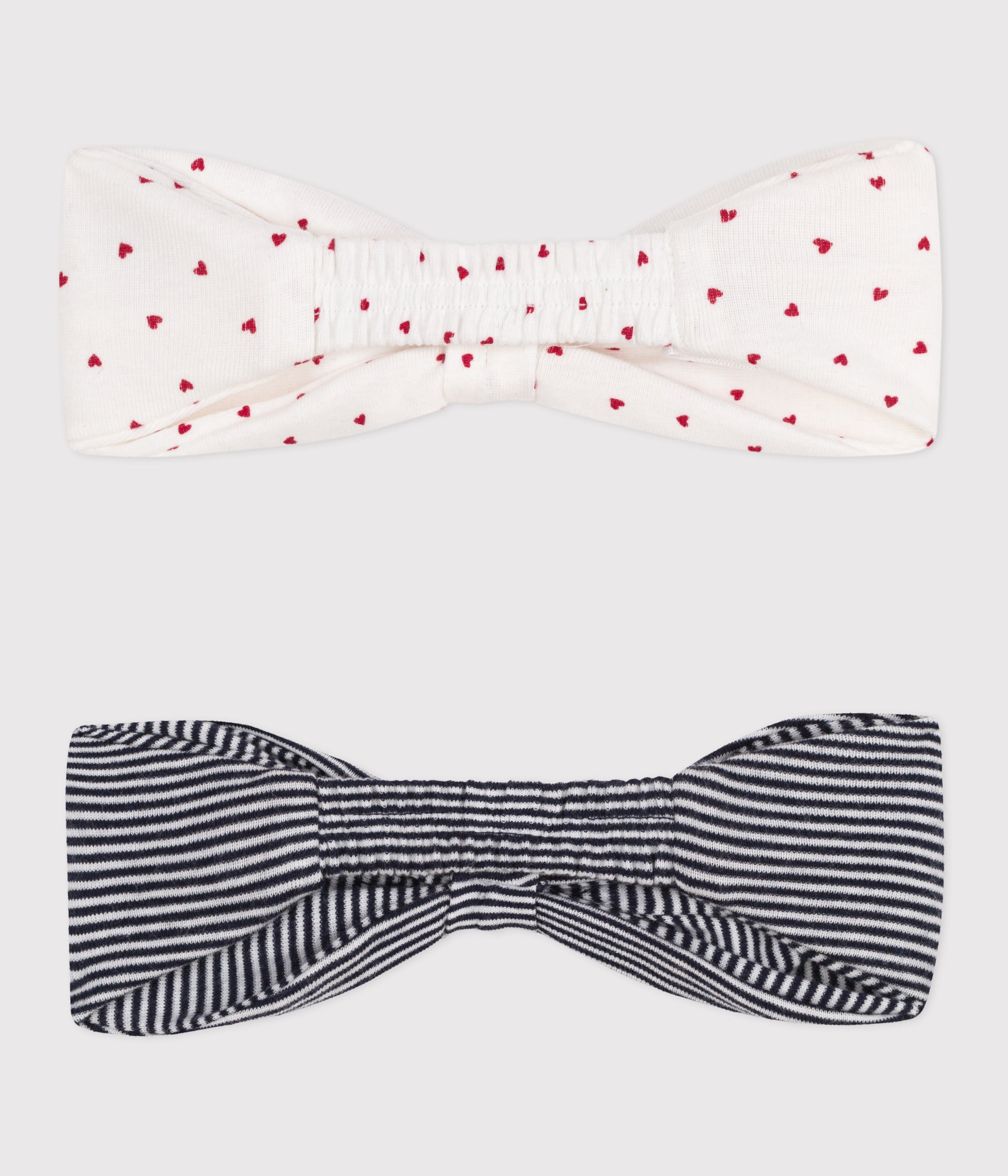 - Set of 2 headbands in rib, the iconic material of Petit Bateau. One with hearts and the other in our iconic sailor stripe