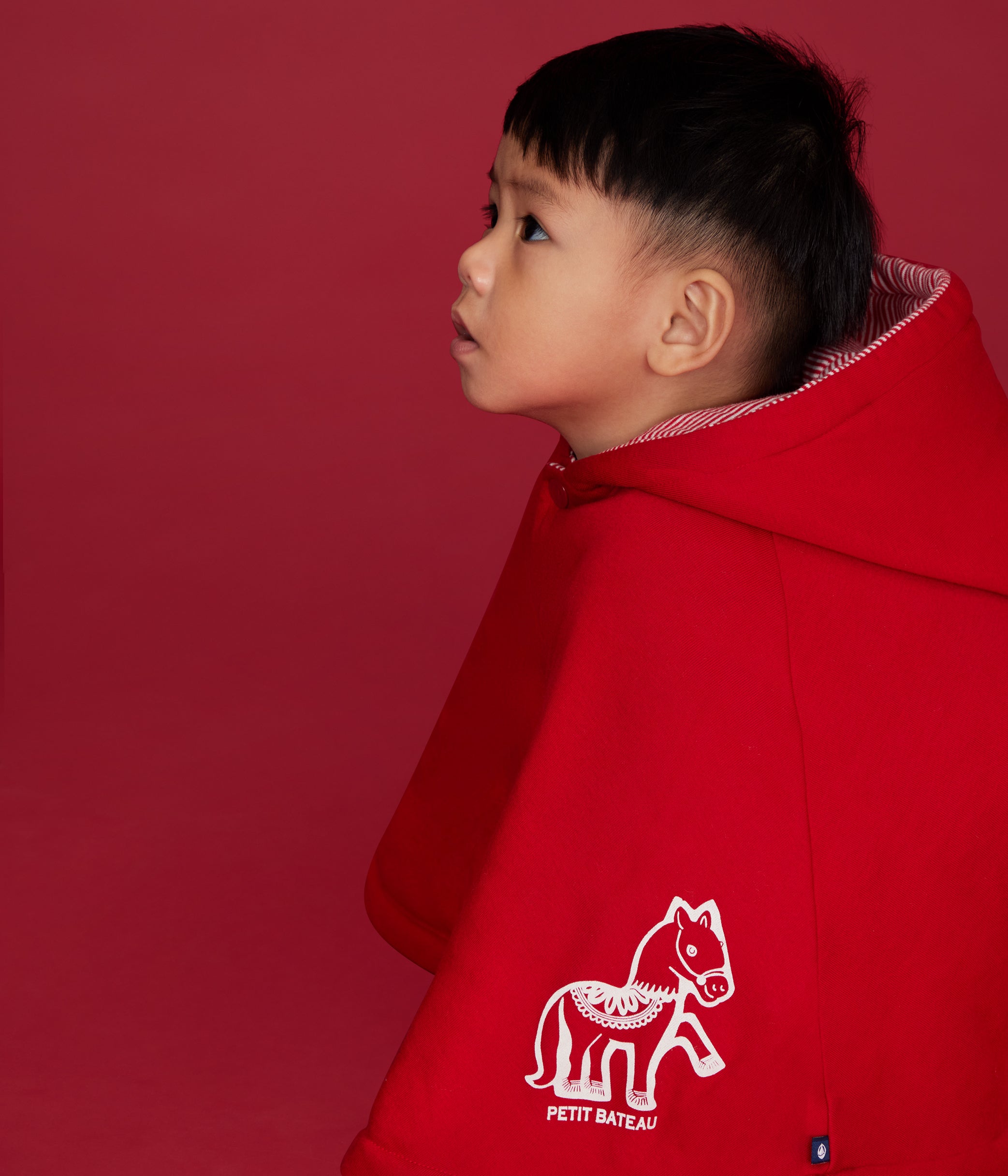 - Cape for girls and boys in 1X1 rib knit, a stretchy and comfortable fabric