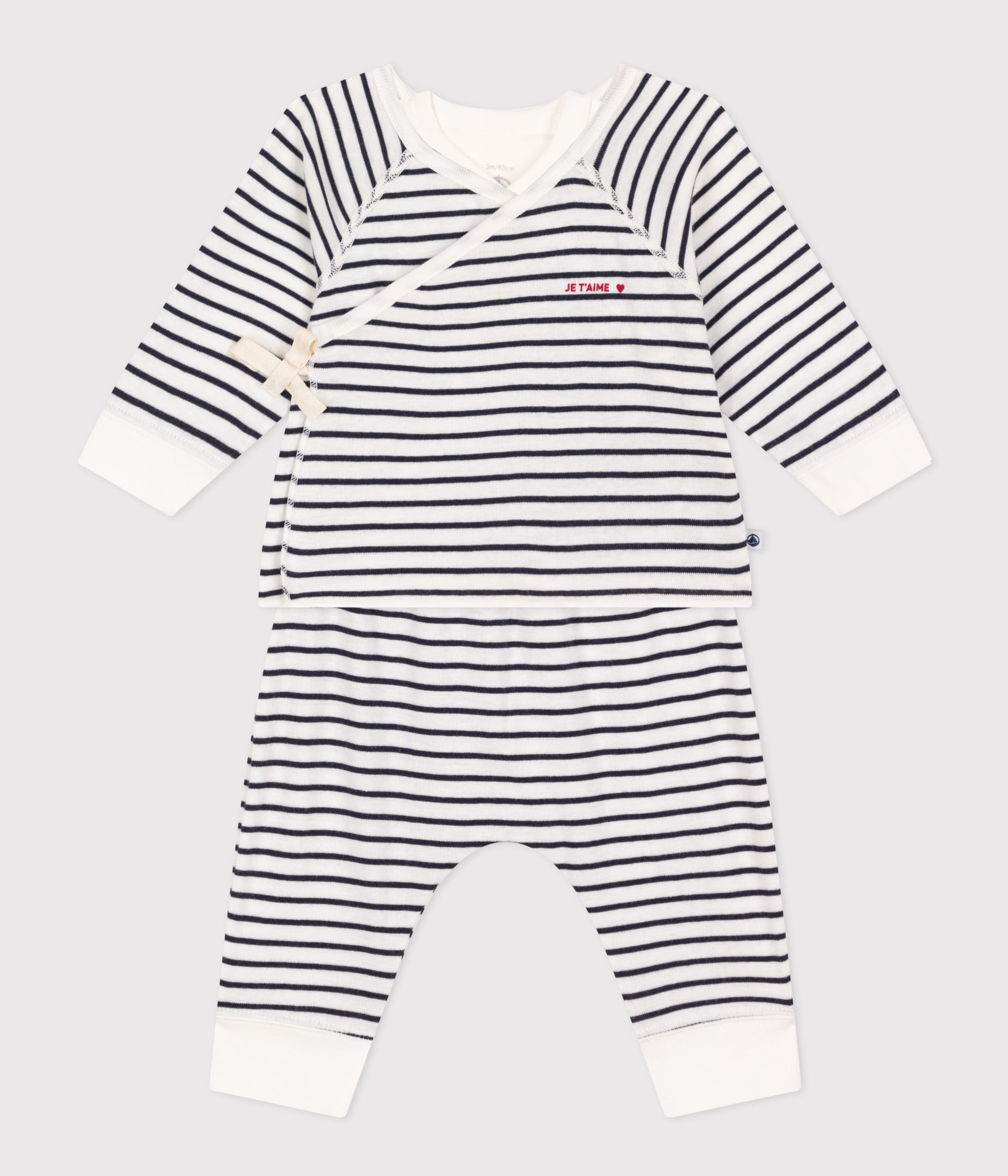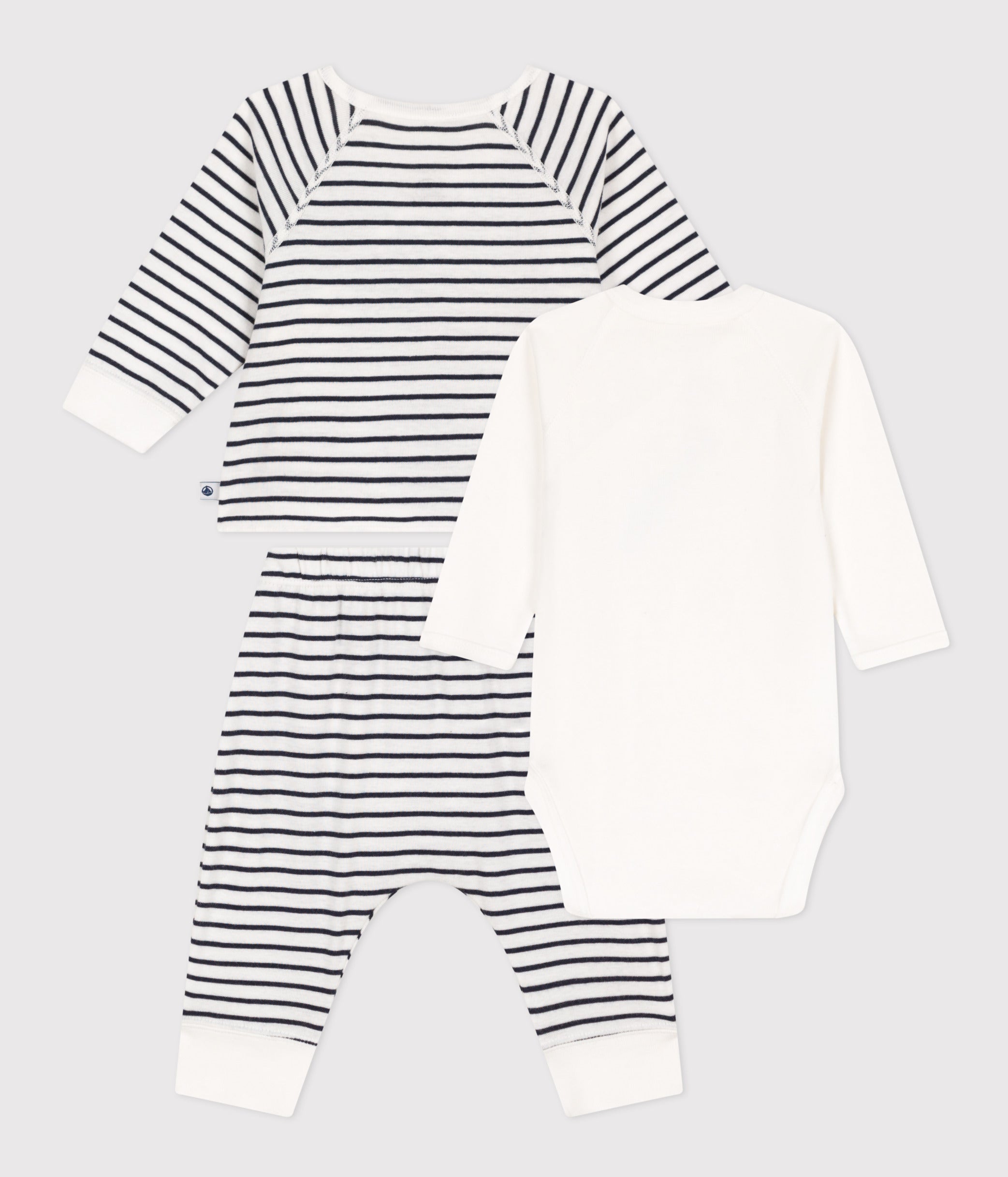 • 3-piece set in Petit Bateau's iconic rib knit. Wrapover top, trousers and bodysuit.