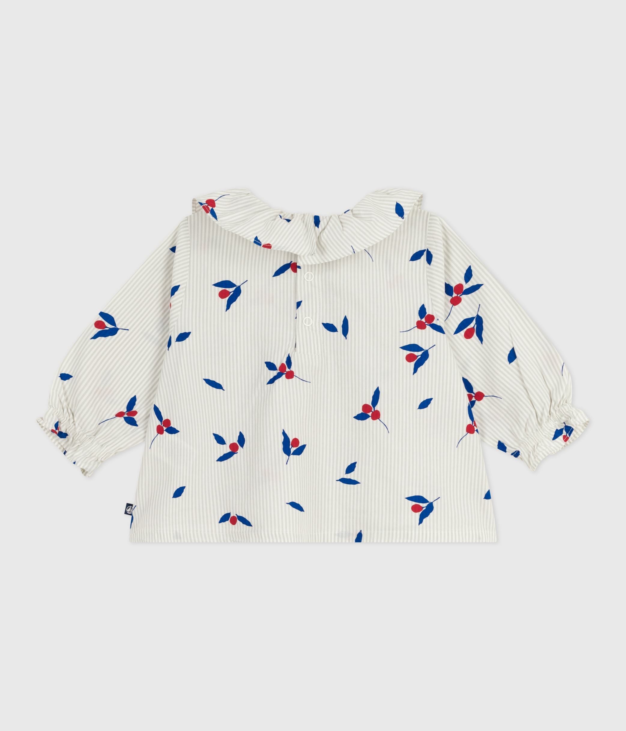 - Girls' blouse in patterned poplin, a light, fine, supple fabric. The collar makes it very stylish.
