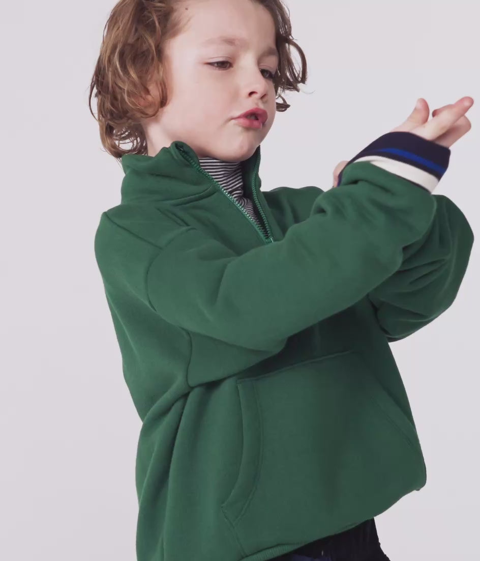 - Boys' high-neck zip-up sweatshirt in soft, comfy fleece.