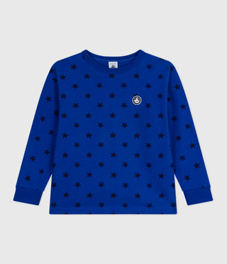 Children's Long-Sleeved Colourblock Boat-Printed Cotton T-Shirt