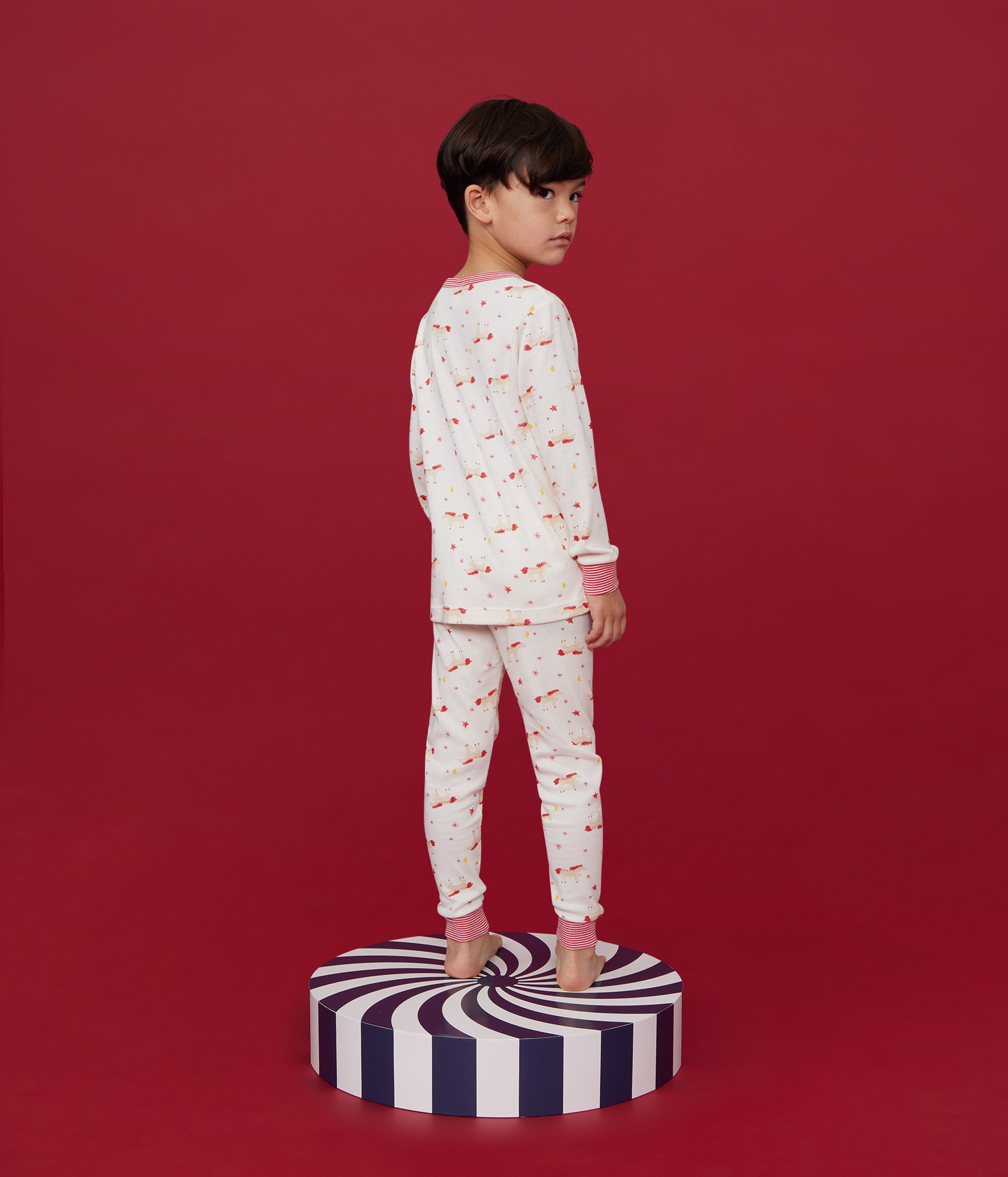 - Unisex pyjamas in 1X1 rib knit, a comfortable, stretchy fabric.