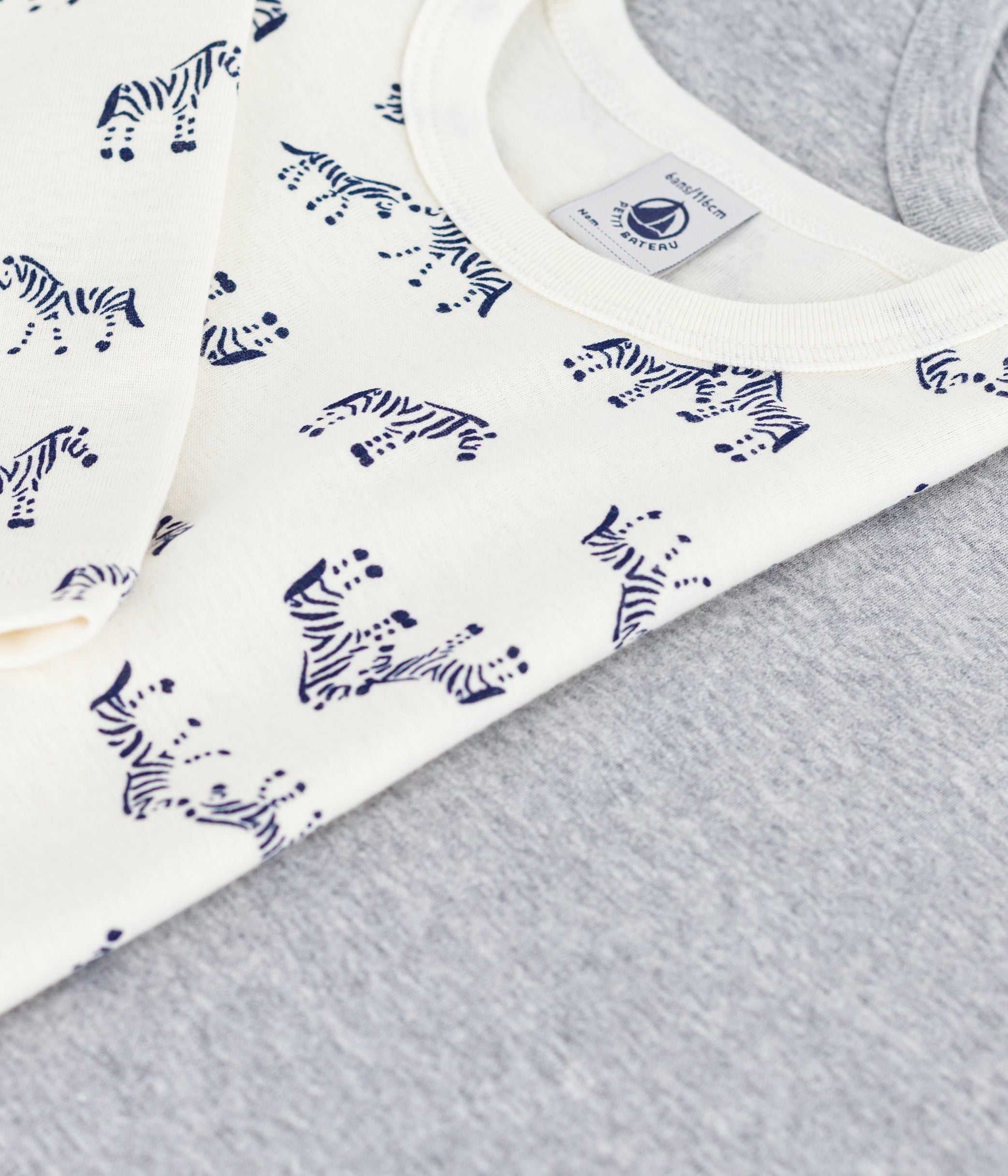 - This pack contains one long-sleeved t-shirt in plain mottled 1x1 rib and one zebra print t-shirt.