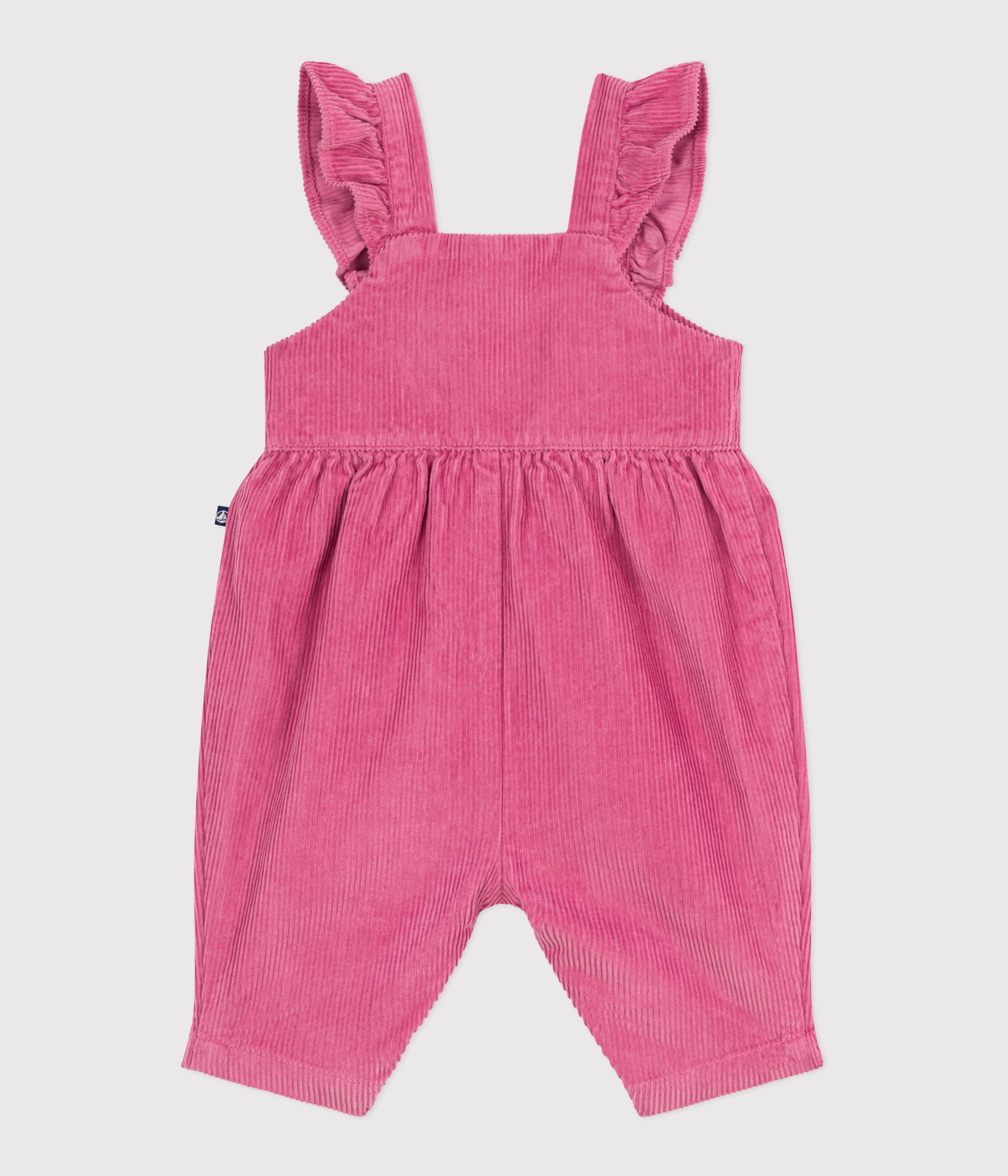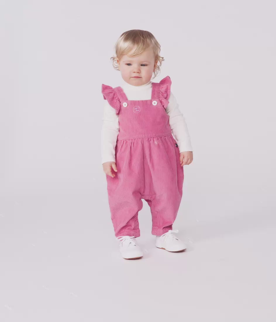 Babies' Dungarees in Plain Corduroy With Ruffles and Long Legs